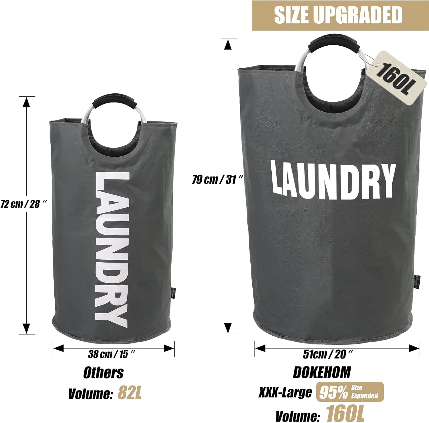 DOKEHOM 160L XX-Large Laundry Basket (7 Colors), Collapsible Laundry Bag, Foldable Laundry Hamper, Folding Washing Bin (Dark Grey, XXL)