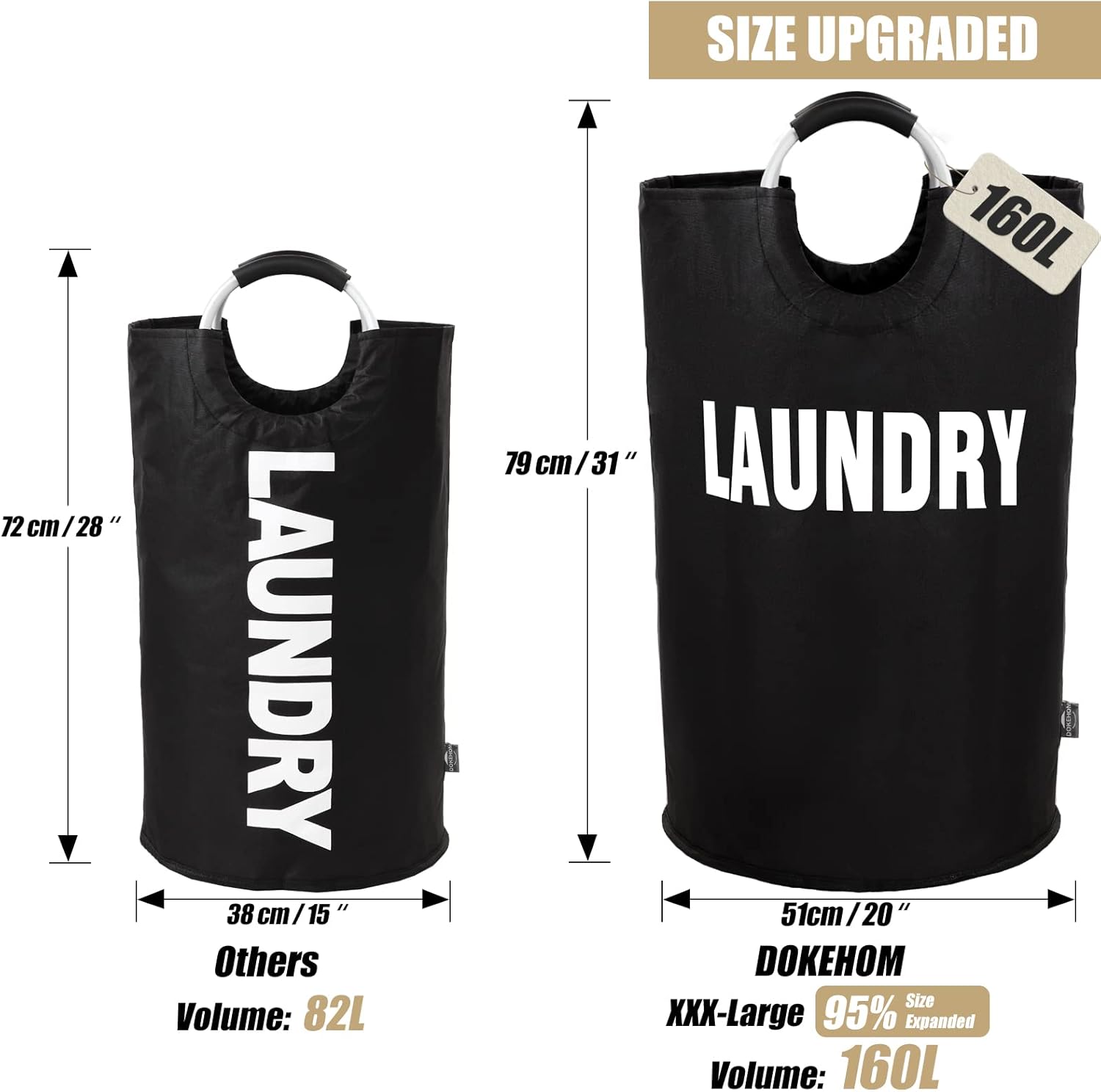 DOKEHOM 160L XX-Large Laundry Basket (7 Colors), Collapsible Laundry Bag, Foldable Laundry Hamper, Folding Washing Bin (Black, XXL)