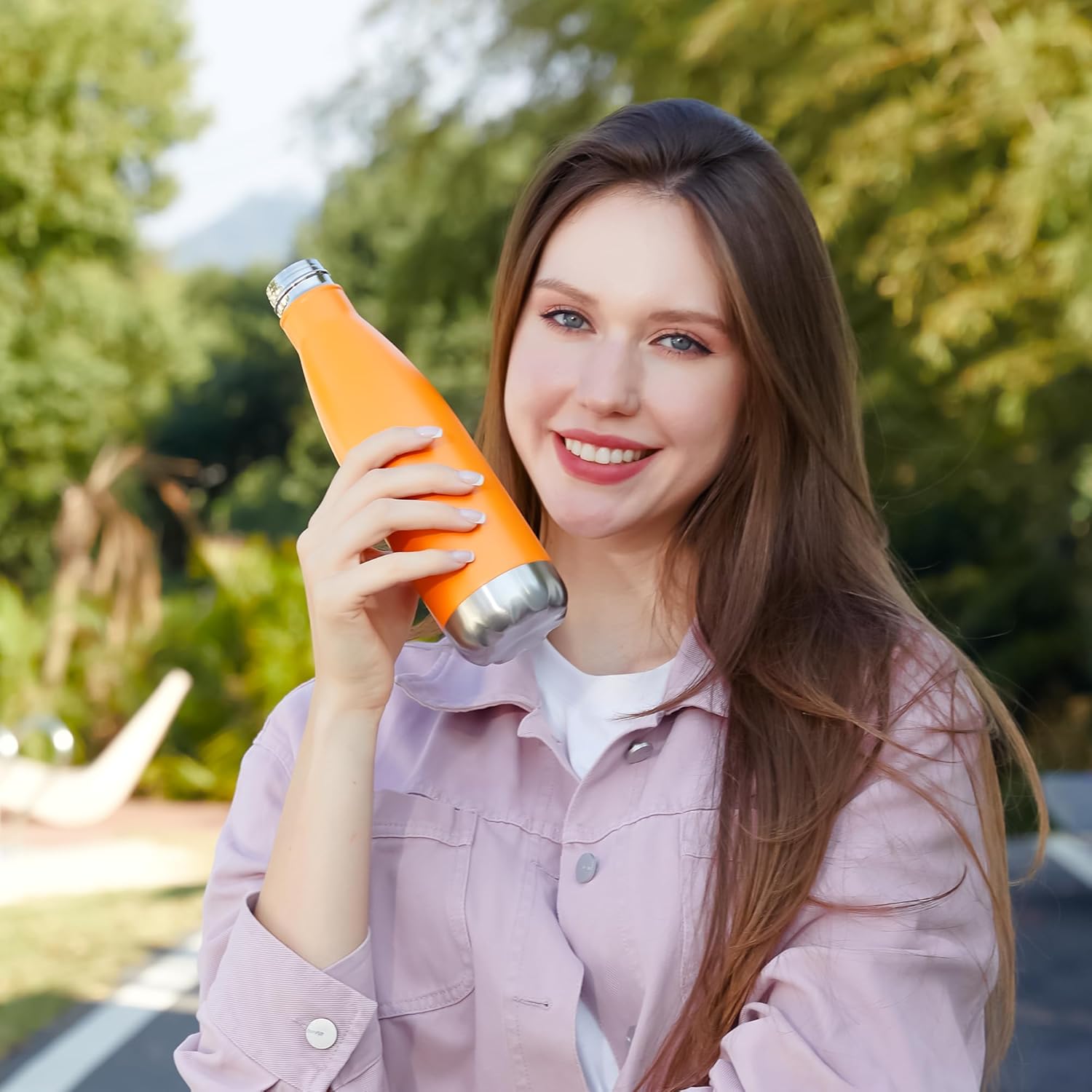 MEWAY 17oz Sport Water Bottle 12 Pack Vacuum Insulated Stainless Steel Leak-Proof Double Wall Cola Shape Water Bottle,Keep Drinks Hot & Cold (Orange,12 Pack)