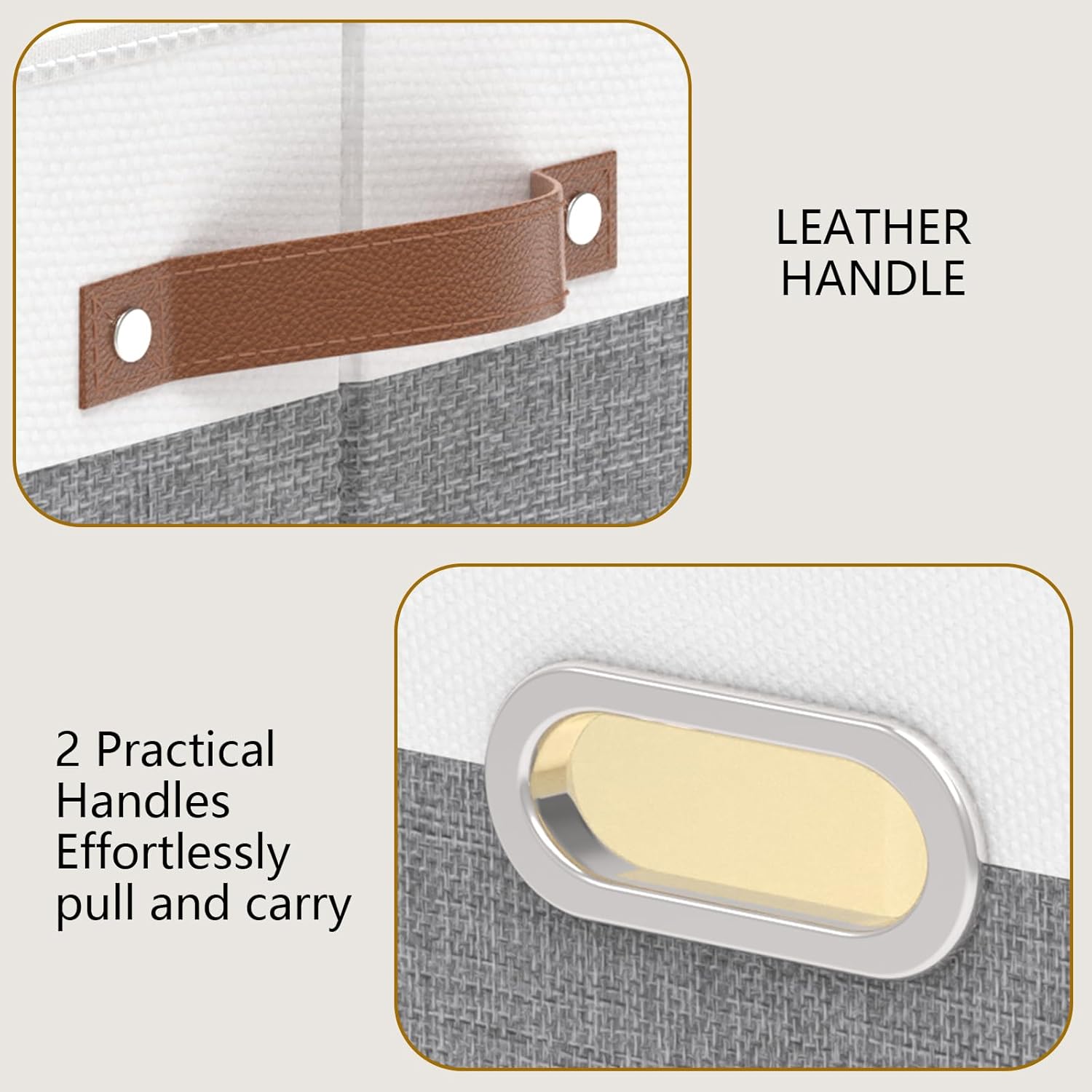 Yawinhe Fabric Storage Bins with Handles, Foldable Baskets for Shelves, Cubes with 3 Handles, Large Boxes for Clothes, White/Grey, 16.9''Lx11.8''Wx10.2''H, 4-Pack