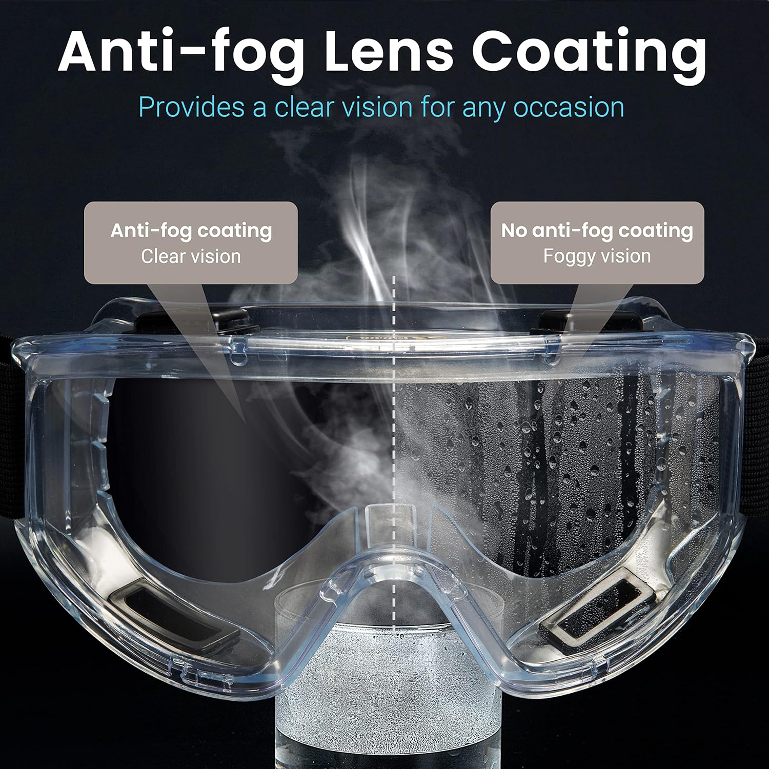 - WIDE FIELD OF VISION: With these anti fog safety glasses ,you'll see everything clearly without risking injury.