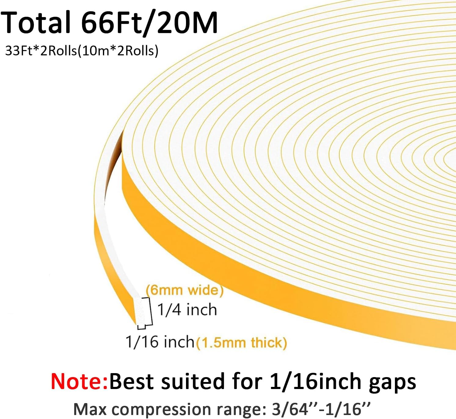 - 🟠2 ROLLS VALUE PACK-This package includes 2 rolls of 1/4 in x 1/16 in x 33 Ft door and window insulation, total 66 Ft length, which means that two rolls are packed together.