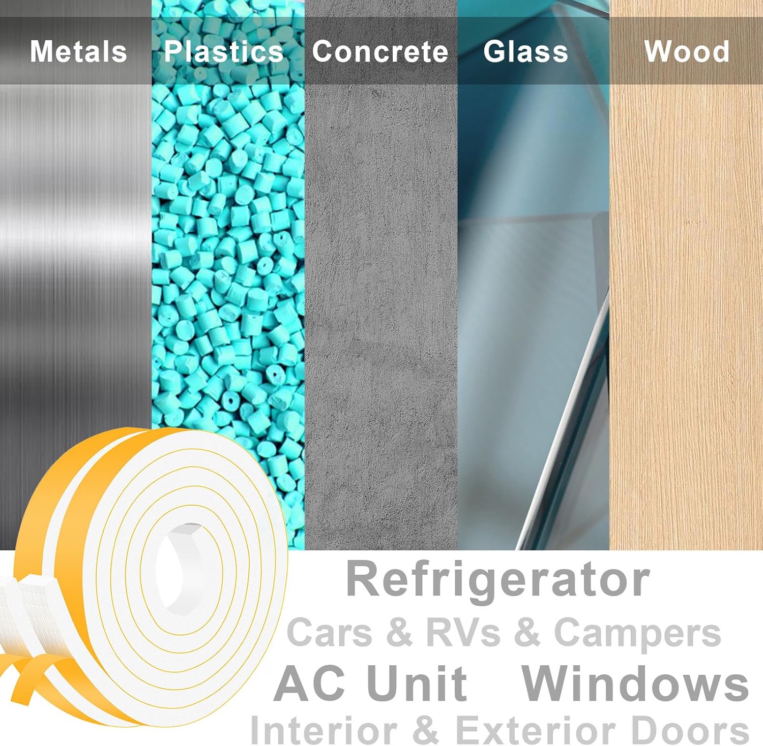 - 🟠WIDE APPLICATION-Trisiki's door seal strip is a tough, durable self-stick tape with minimal compression and can help prevent rattles, vibrations and squeaks. It's widely used as a weatherstrip, or as a gasket or to cushion and stabilize major appliances, such as doors, windows, furniture, electrical cabinets, speakers, toys, handicrafts, sports equipment, vents, air conditioners, plumbing, hvac. Plus, on cars, trucks and boats