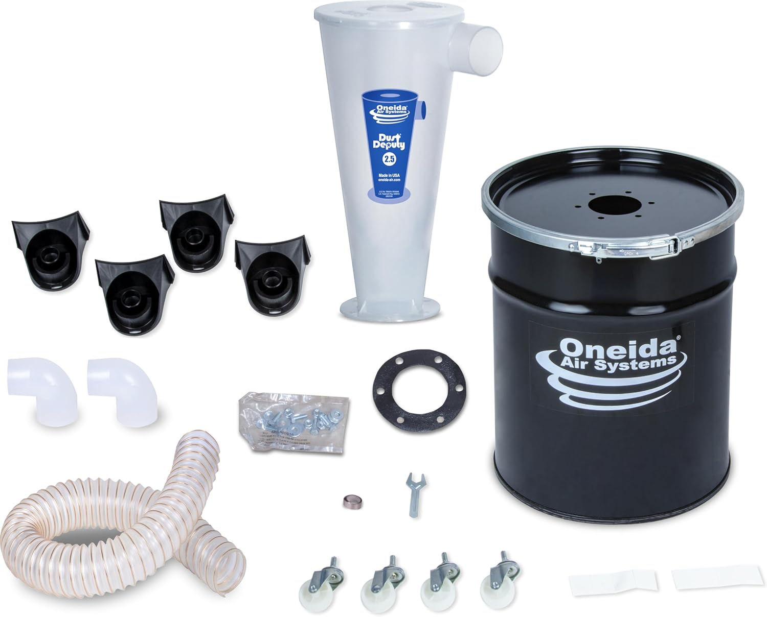Oneida Air Systems Dust Deputy 2.5 Deluxe Cyclone Separator Kit with 10-Gallon Mobile Steel Dust Bin for Wet/Dry Shop Vacuums (DD 2.5 Deluxe 10-Gal)