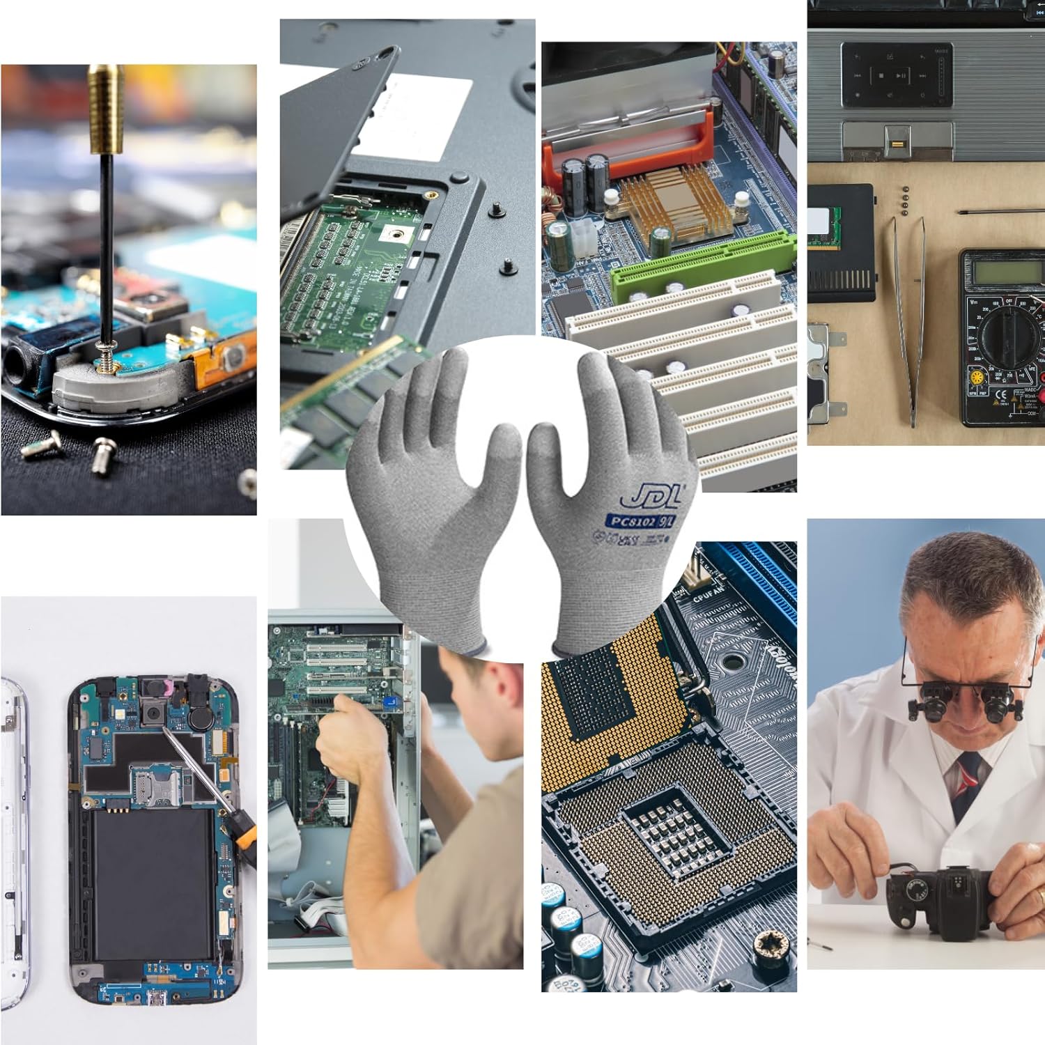 JDL ESD Work Gloves, Anti-Static Gloves for PC Building, 6 pairs, Computer Installation & Repair, High Resistance Carbon Fiber Gloves, Medium