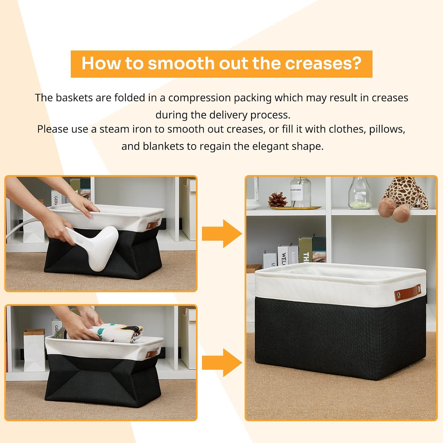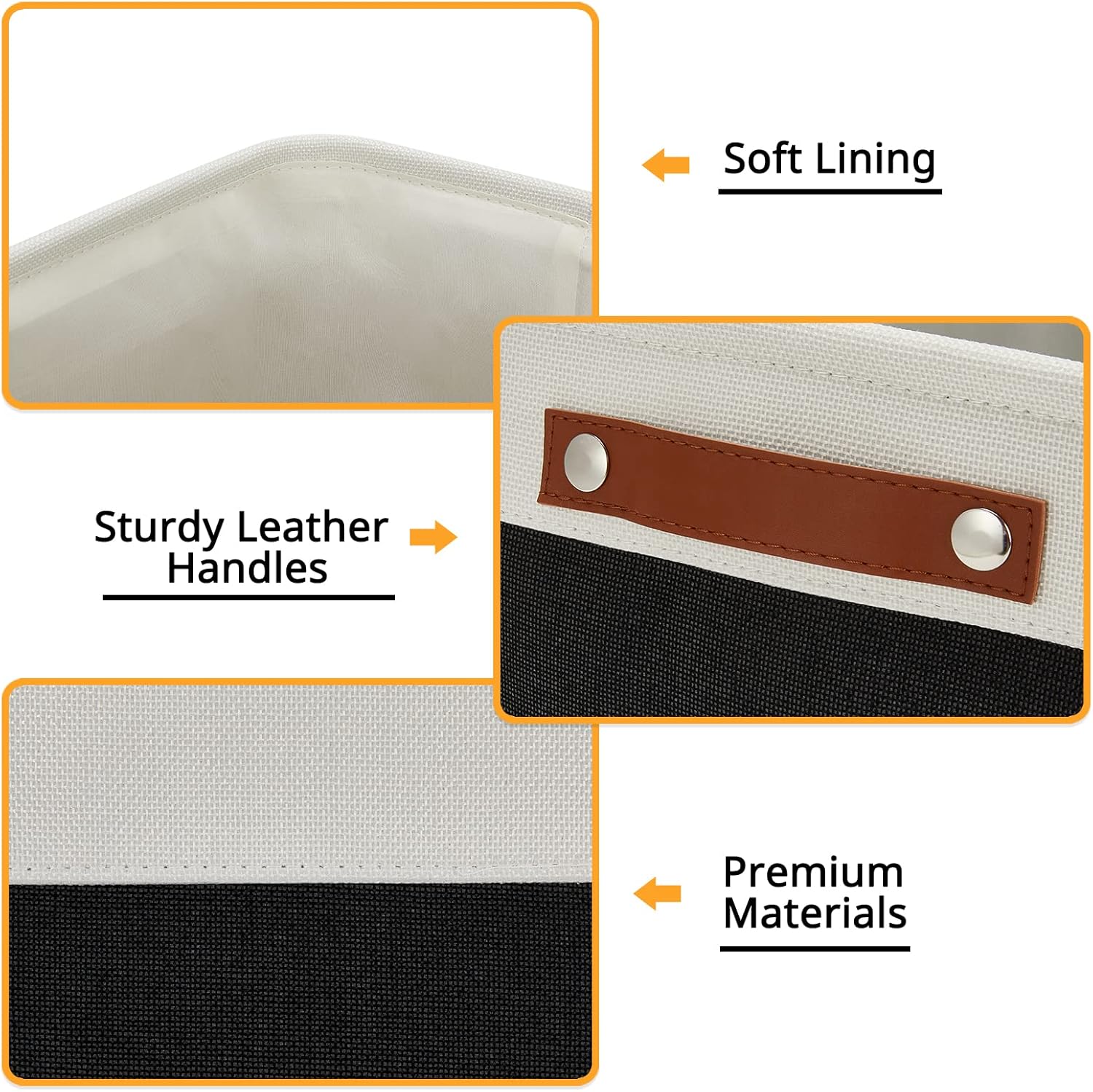 DULLEMELO Linen Closet Organizer and Storage Basket for Office, Bedroom, Cloth, Baskets for Organizing and Storage with handles for Shelves,Closet,Gift,Toys(White&Black)