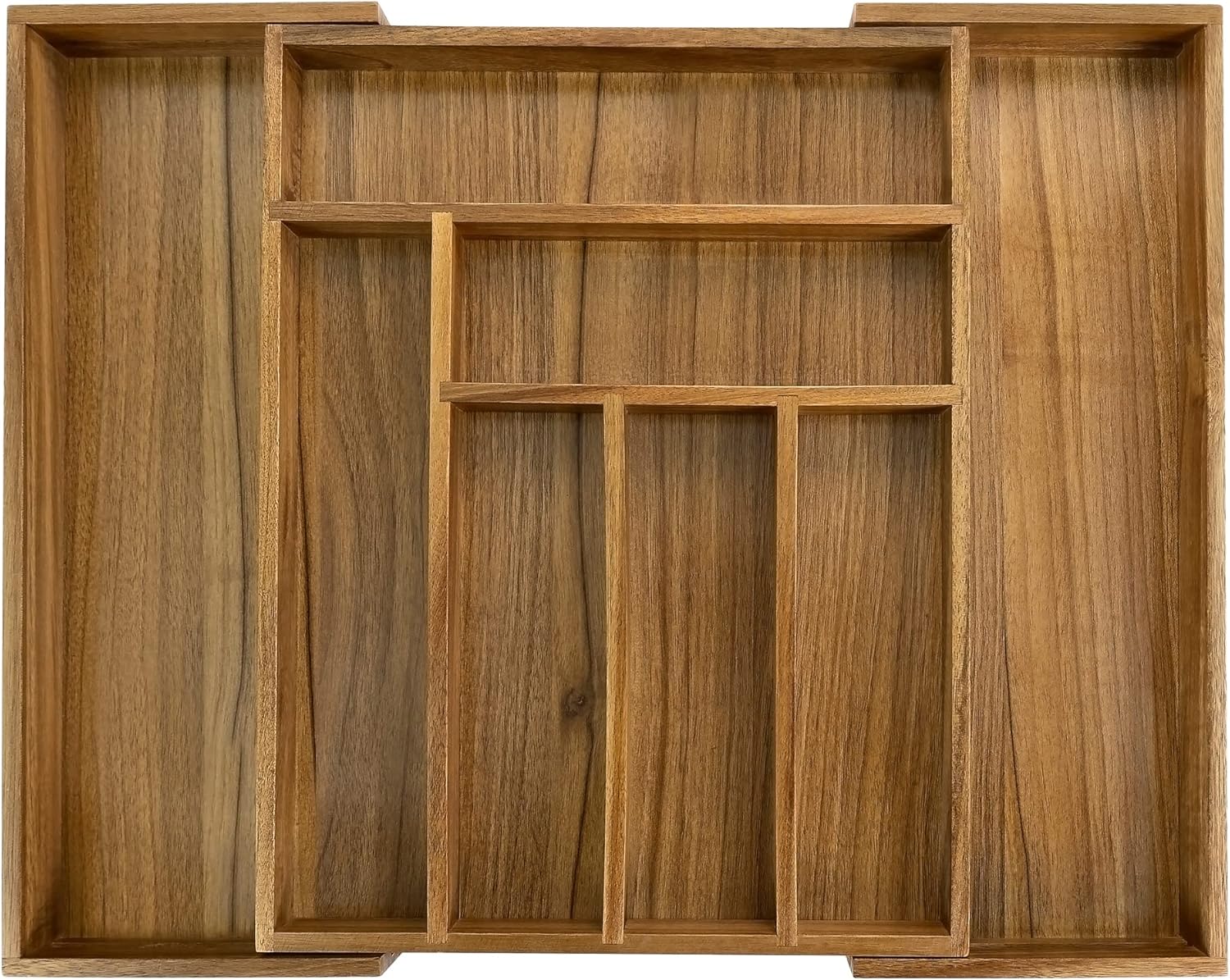 - Premium Material: Made of thick premium acacia material, the cutlery organizer is sturdy so you can rest assured that it is safe to use with all forms of tableware. The construction means it is built to last for a long time