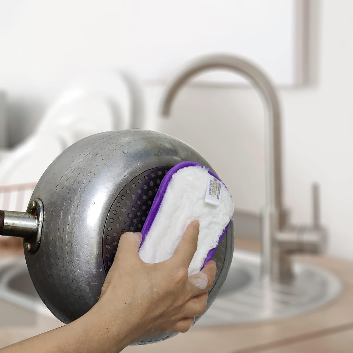 - ✅【Clean Smarter - Not Harder】The best of both worlds designed scrubber / cloth combo sponge - scrubbing away dirty or burnt food easily and Washing dishes Oil Nonstick.