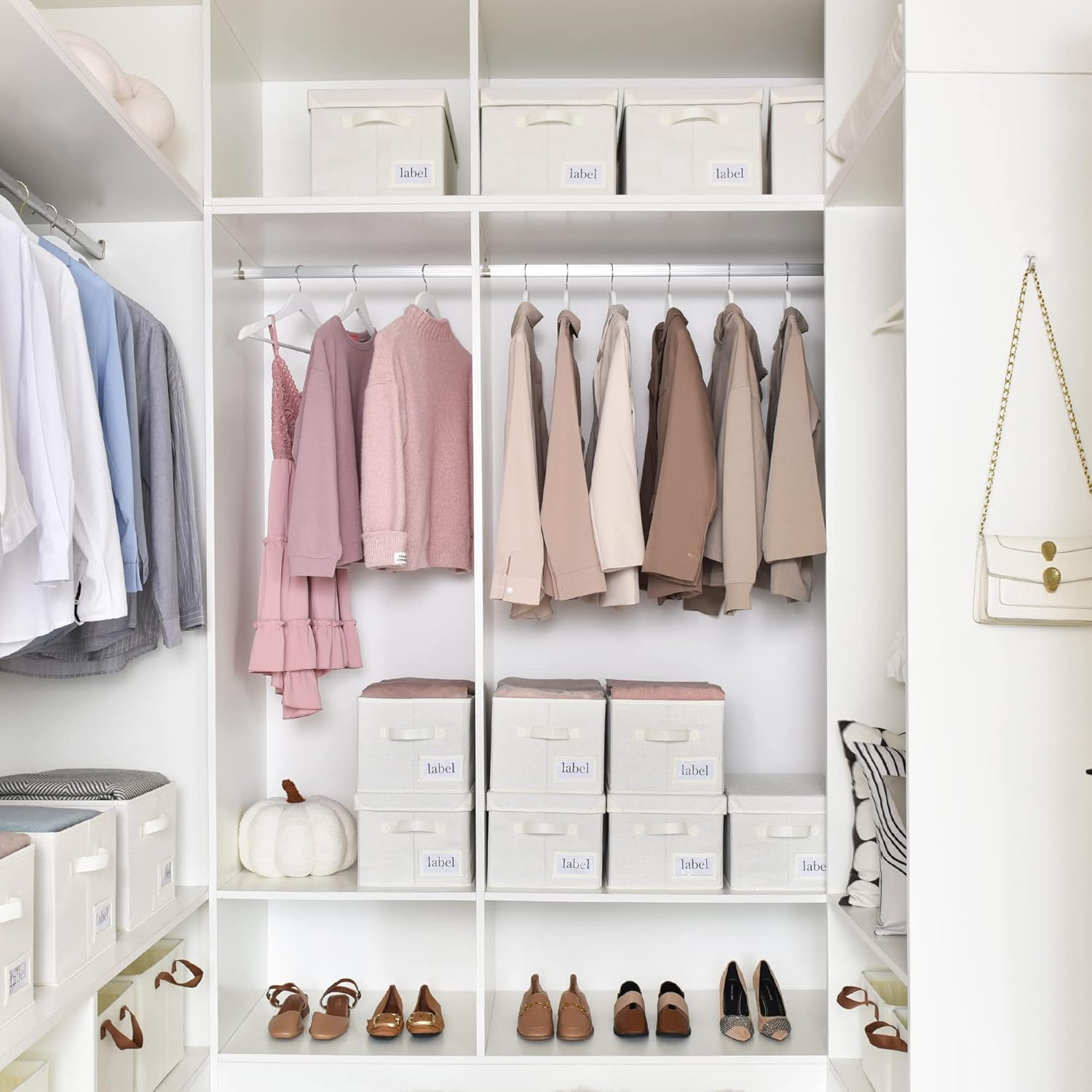 - Practical Design - The decorative storage box comes with 2 handles and is easy to pull or lift, perfect for organizing cabinets, walk-in closets, bookcases and more. Each box also comes with a label for easy identification of the contents. The storage bin is easy to clean, just dust with a soft, dry cloth.