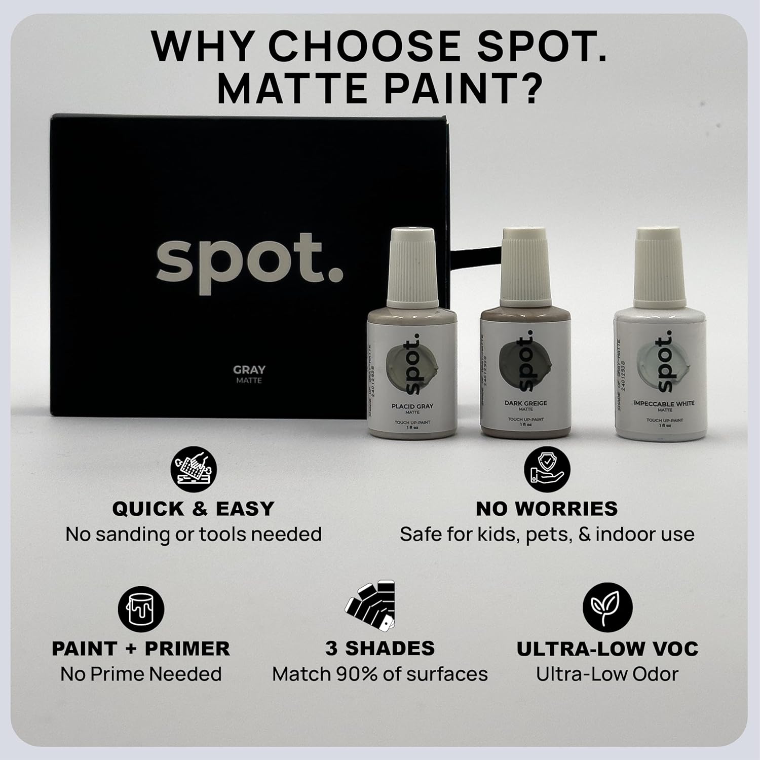 spot. Touch-Up Paint | Matte Finish for Cabinets, Walls, Doors & Furniture | Multi-Tone Gray Repair Kit | Quick-Dry, Self-Priming, Low-Odor, Eco-Friendly | No-Sanding or Primer Needed | 3 Pack