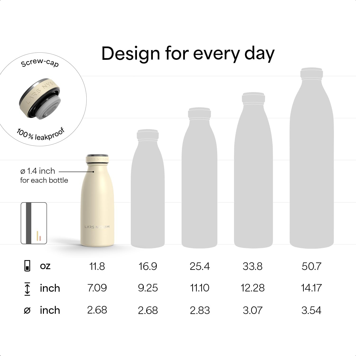 LARS NYSØM Stainless Steel Insulated Water Bottle 12oz 17oz 25oz 34oz 51oz | Insulated Thermo Flask for Hot and Cold Beverages | Leakproof Drinking Bottle (Carbon Black, 11.9oz)