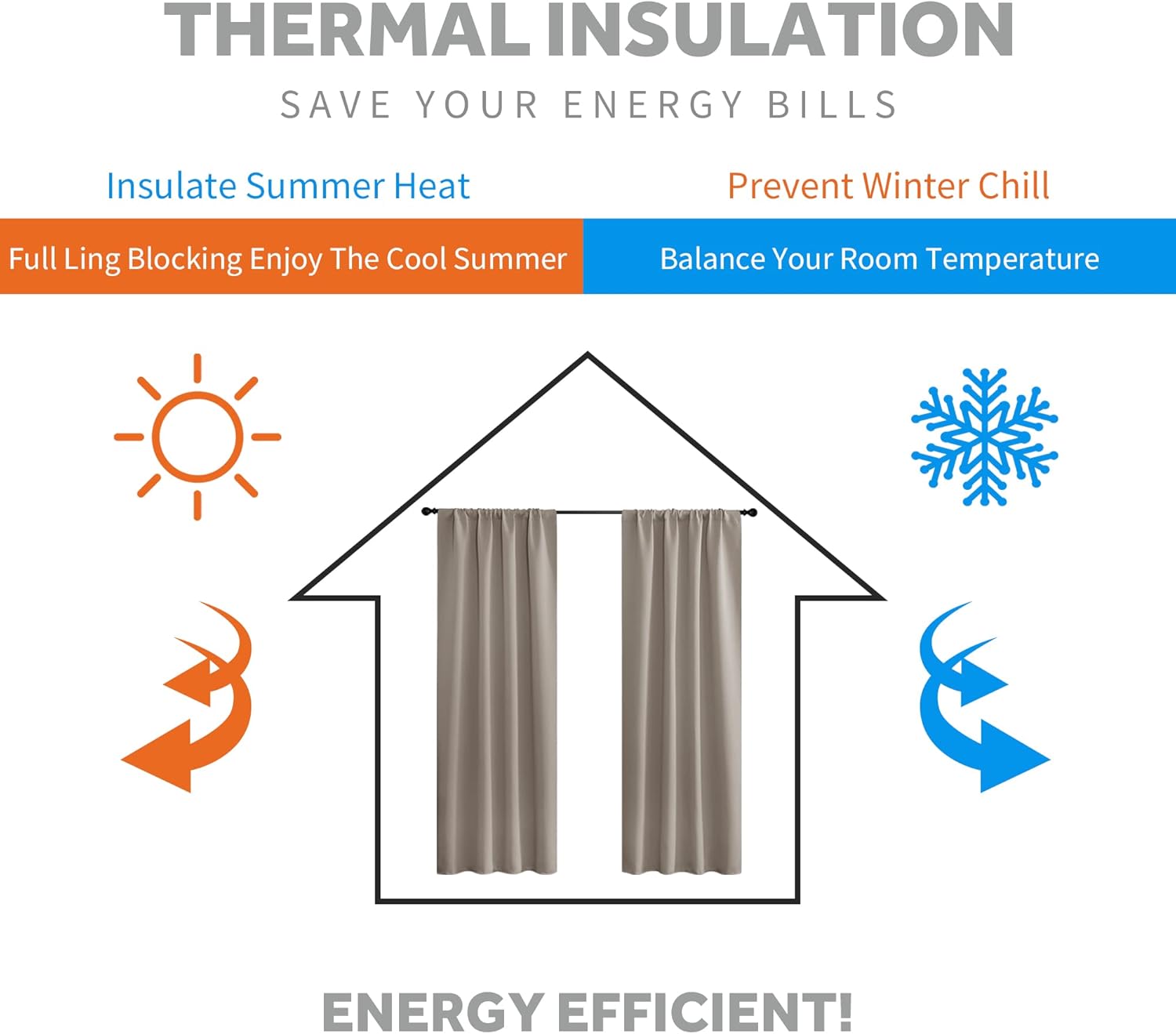 - LIGHT BLOCKING - Curtains block 85-95% sunlight and UV rays (Dark color works better) for maximum privacy and undisturbed sleep. Thermal property of the blackout curtains ensure that the room temperature is regulated. Protect your indoor furniture from directly exposing to the sun.