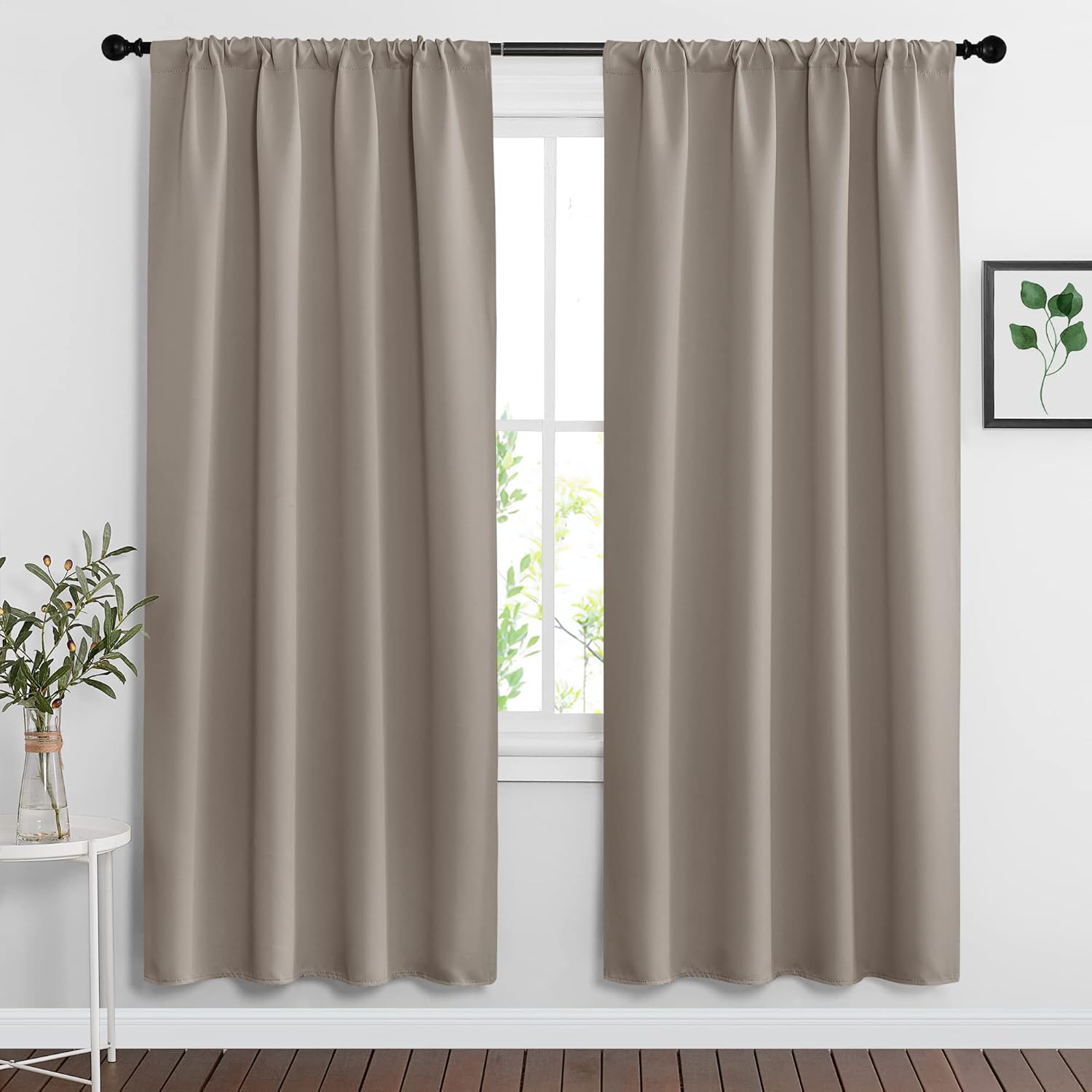 RYB HOME Room Darkening Curtains for Bedroom, Thick Durable Privacy Window Shades, Rod Pocket Thermal Insulated Backdrop for Teenagers Bedroom Dorm, W 42 x L 72 inches, 2 Panels, Sand