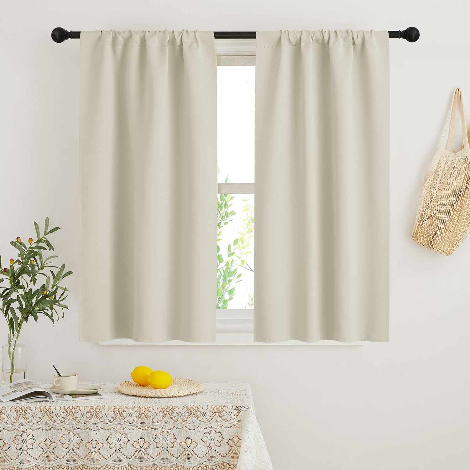RYB HOME Beige Short Curtains Blackout, 45 inch Durable Cafe Curtains Room Darkening Window Drapes Privacy Protection for Basement Closet Kithen, W29 x L45 inch, 2 Panels