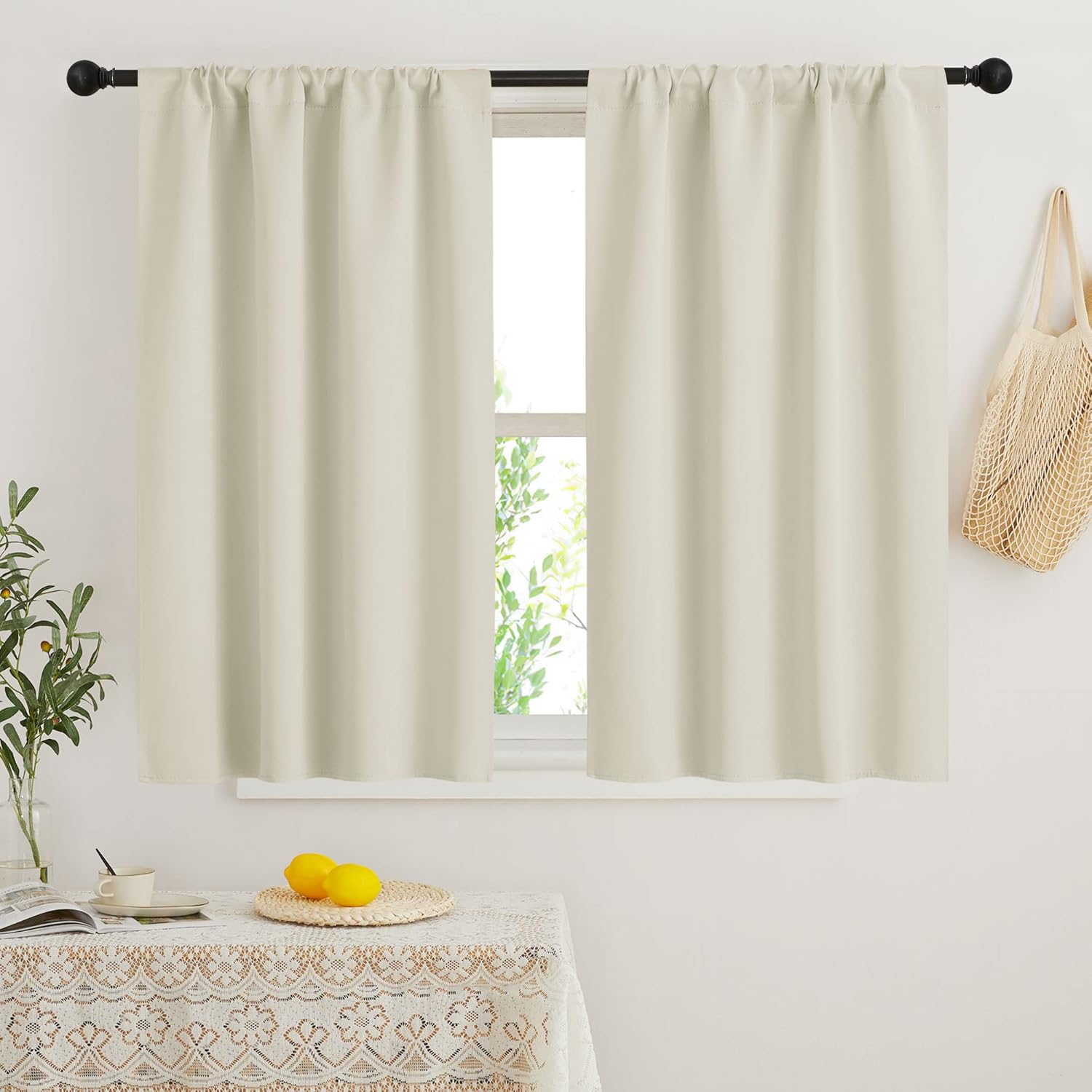 RYB HOME Beige Short Curtains Blackout, 45 inch Durable Cafe Curtains Room Darkening Window Drapes Privacy Protection for Basement Closet Kithen, W34 x L45 inch, 2 Panels