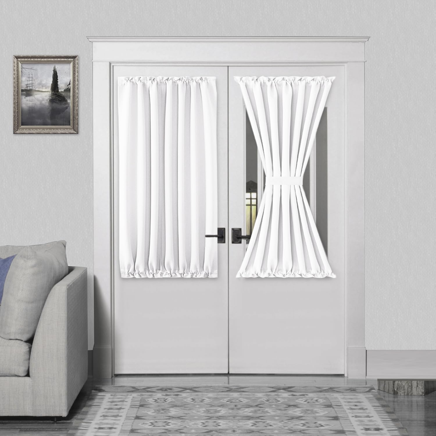 DWCN French Door Curtains – Rod Pocket Thermal Curtain for Doors with Glass Window, Kitchen and Patio Doors for Privacy, 54 X 40 Inches Long, 1 Curtain Panel with Tieback, Pure White