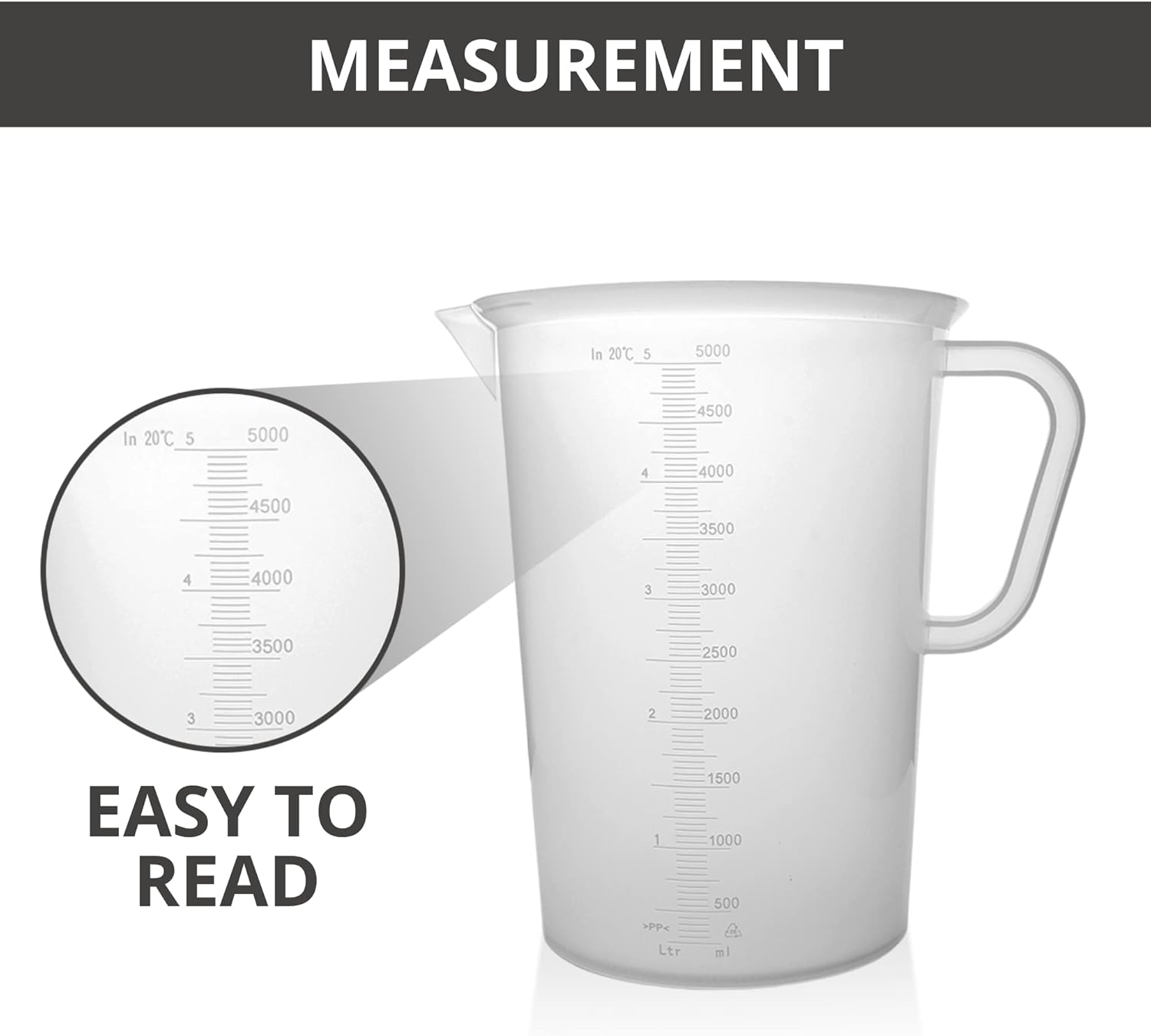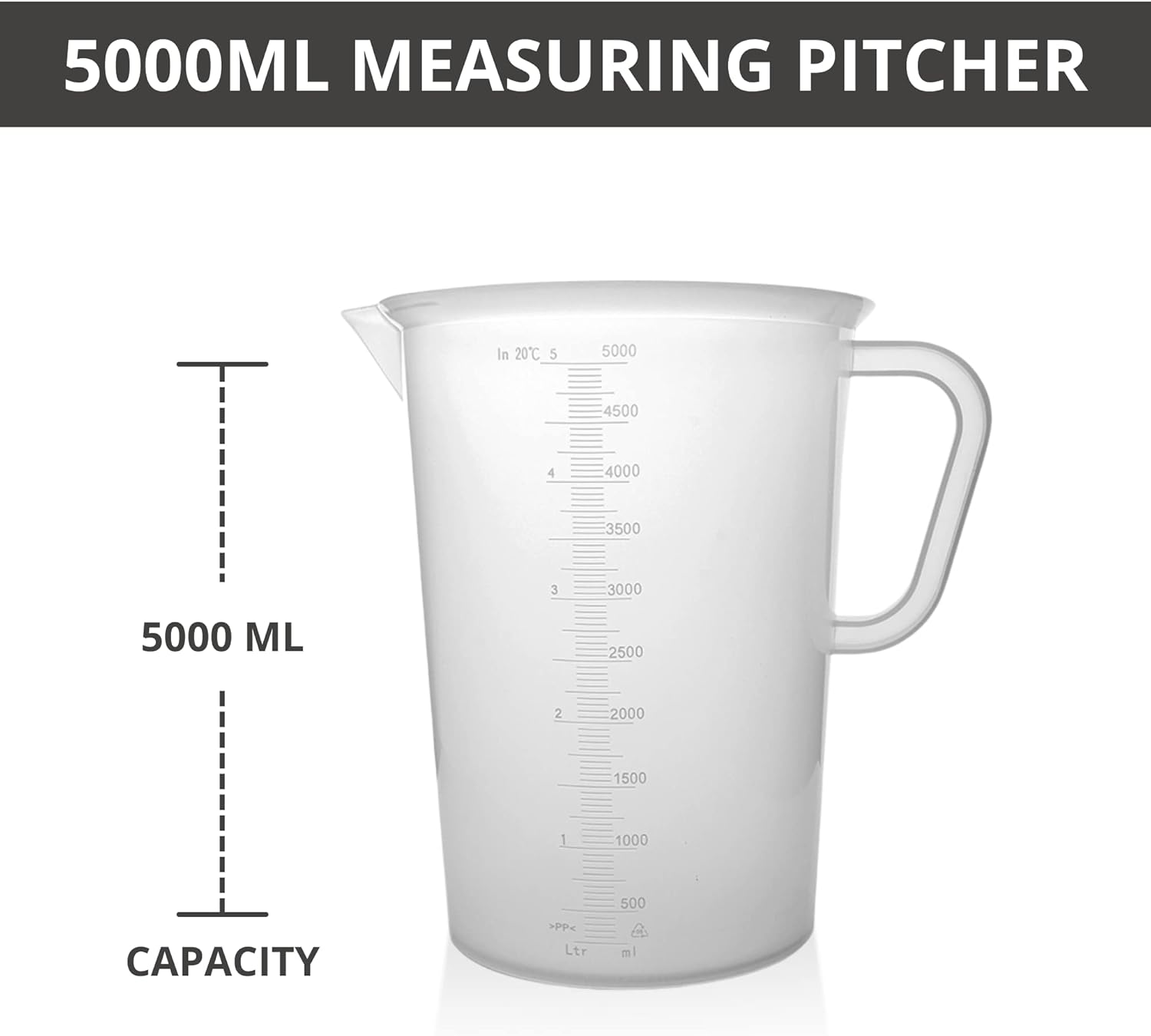 Plastic Graduated Measuring and Mixing Pitcher - 5000ml Plastic Graduated Measuring Pitcher - Soap Making Supplies for Easy Pouring & Accurate Measurements, With Handle & Pour Spout, 5 Liter