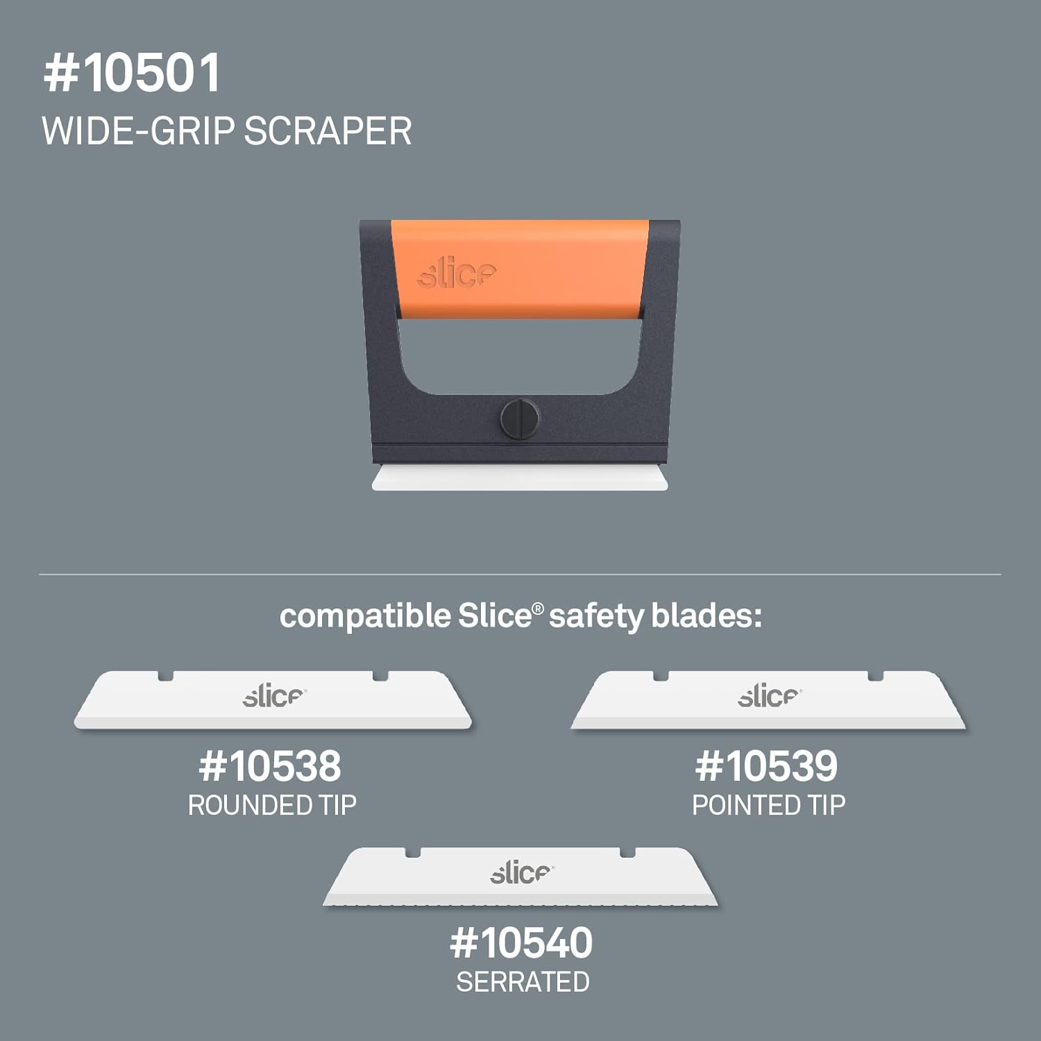 Slice 10501 Wide Scraper, Easy Clean, Ceramic Blade Lasts 11x as Long as Metal, Finger Friendly, Never Rusts, Safety Cap, Short Handle, 6 Pack