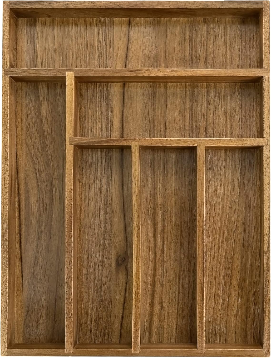 - A Must Have Kitchen-Accessory - Neutral tone and gorgeous wood allow our silverware drawer organizer to blend elegantly with any decor, and it fits most standard sized drawers. Reinforced base and deep compartments ensure extra durability and provide plenty of storage space for drawer organizer that will meet all your needs