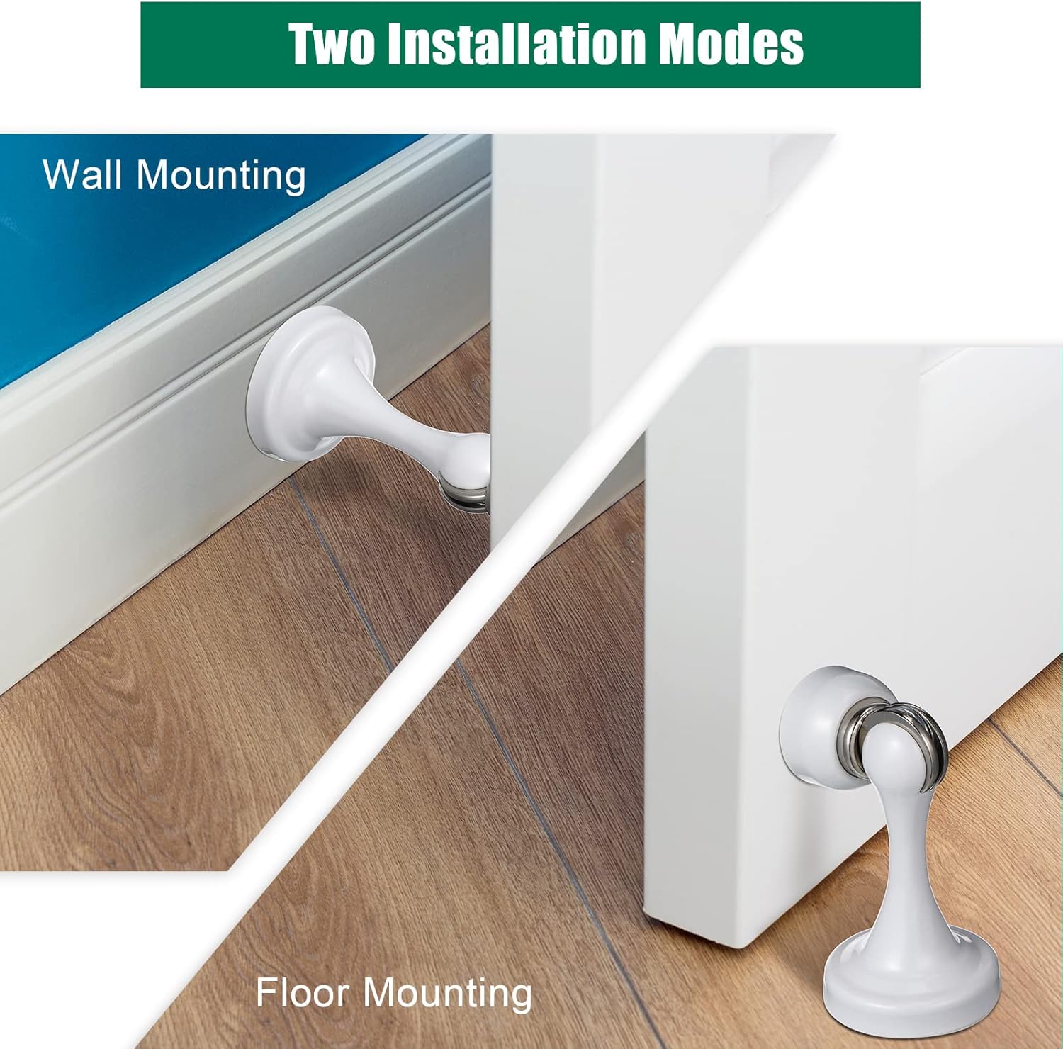 - Install with Screws:our metal magnetic door stopper can be installed vertically on the floor, or horizontally on the baseboard, or wall, which can meet your different needs; Just unscrew the two parts apart, mark the holes, drill the holes and attach the parts through screws to the doors