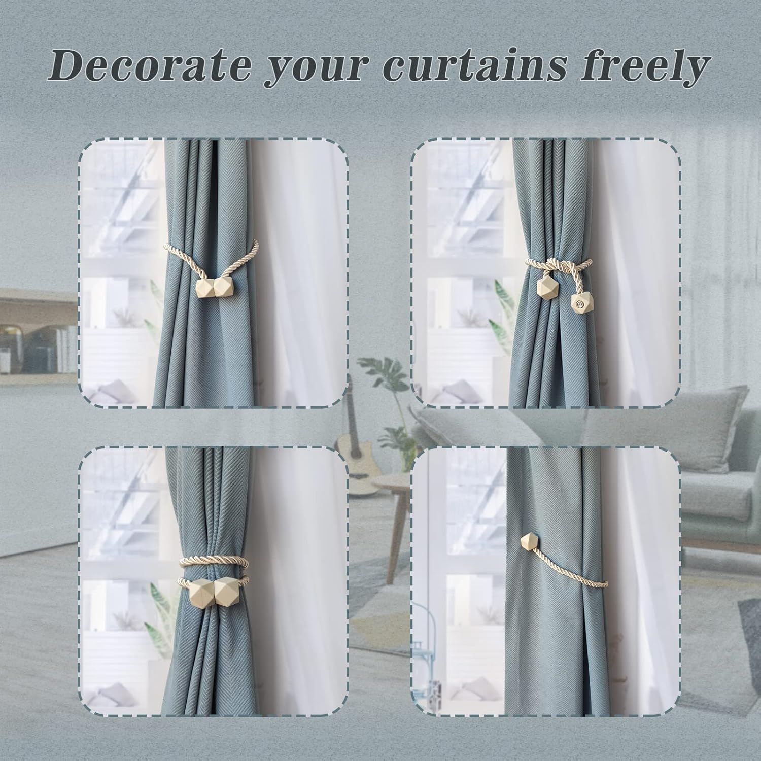 - š[Upgrade Powerful Magnetic] Our magnetic curtain tiebacks magnets use high-end new imported nickel-plated magnets, with strong corrosion resistance and durability, more magnetic than ordinary magnetic curtain tiebacks, and do not rust and not lose color. The rope of curtain tie adopts upgrade thickened solid polyester yarn, which is not only durable, but also not easy to wear or pilling.