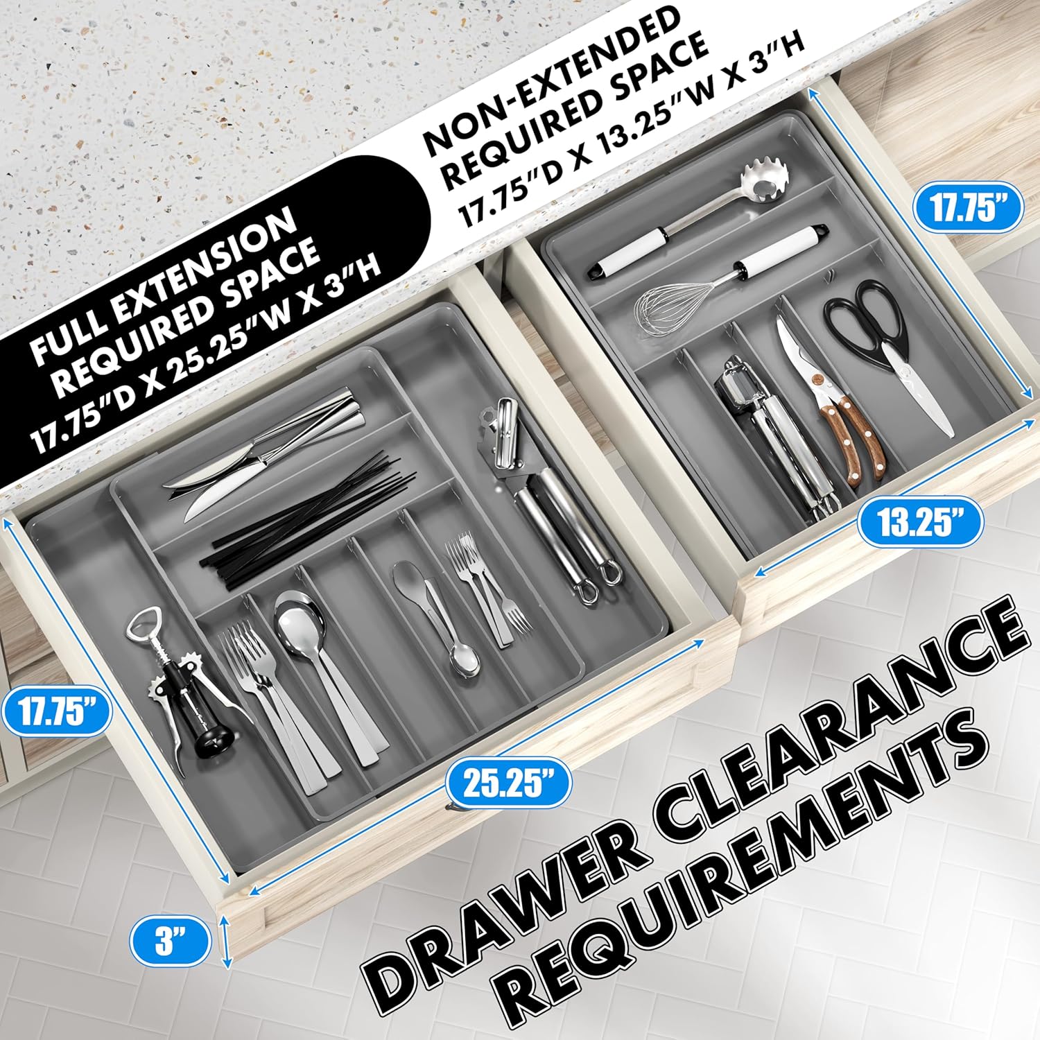 - ✅ Expandable & Adjustable Width: Fits most modern drawer sizes, expands easily to maximize space; perfect for silverware, cooking tools, and gadgets