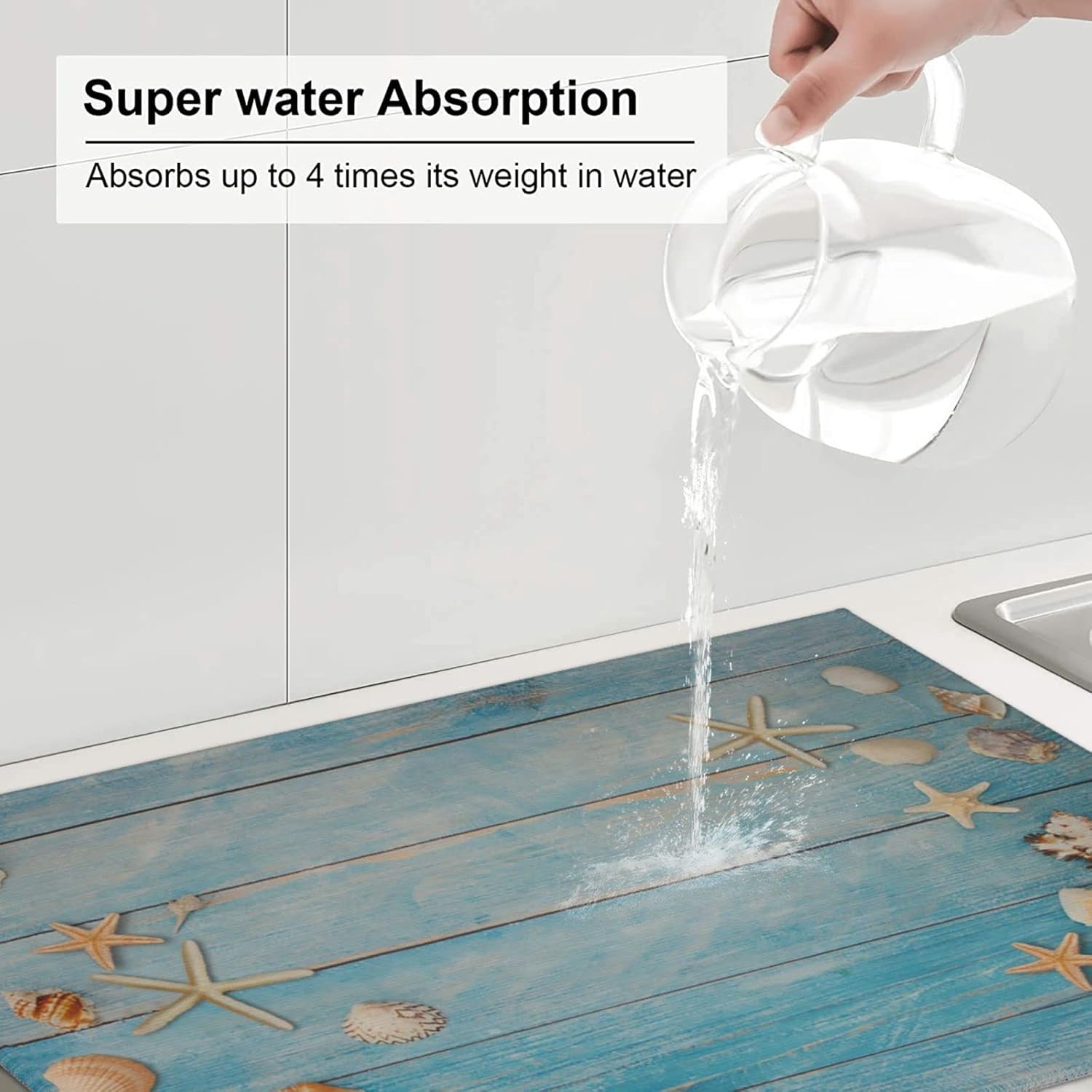 Seashells Starfish On Blue Wood Absorbent Microfiber Xl Dish Drying Mat For Kitchen Countertop Extra Large Reversible Drainer Rack Pad 18 X 24 Inch