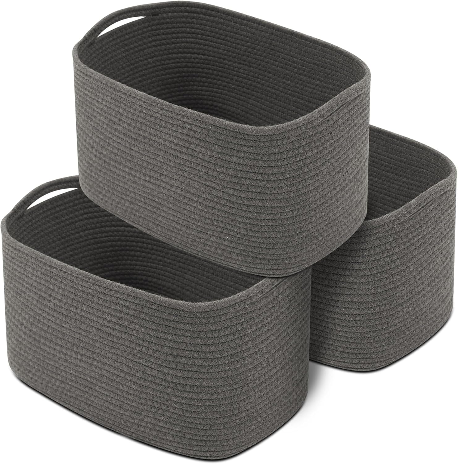 CHAT BLANC Cotton Rope Baskets for Organizing | Storage Baskets for Shelves | Rope Basket for Storage, Small Laundry Woven Baskets for Dog Toy Bin, Baby items, Graphite 3 Pack