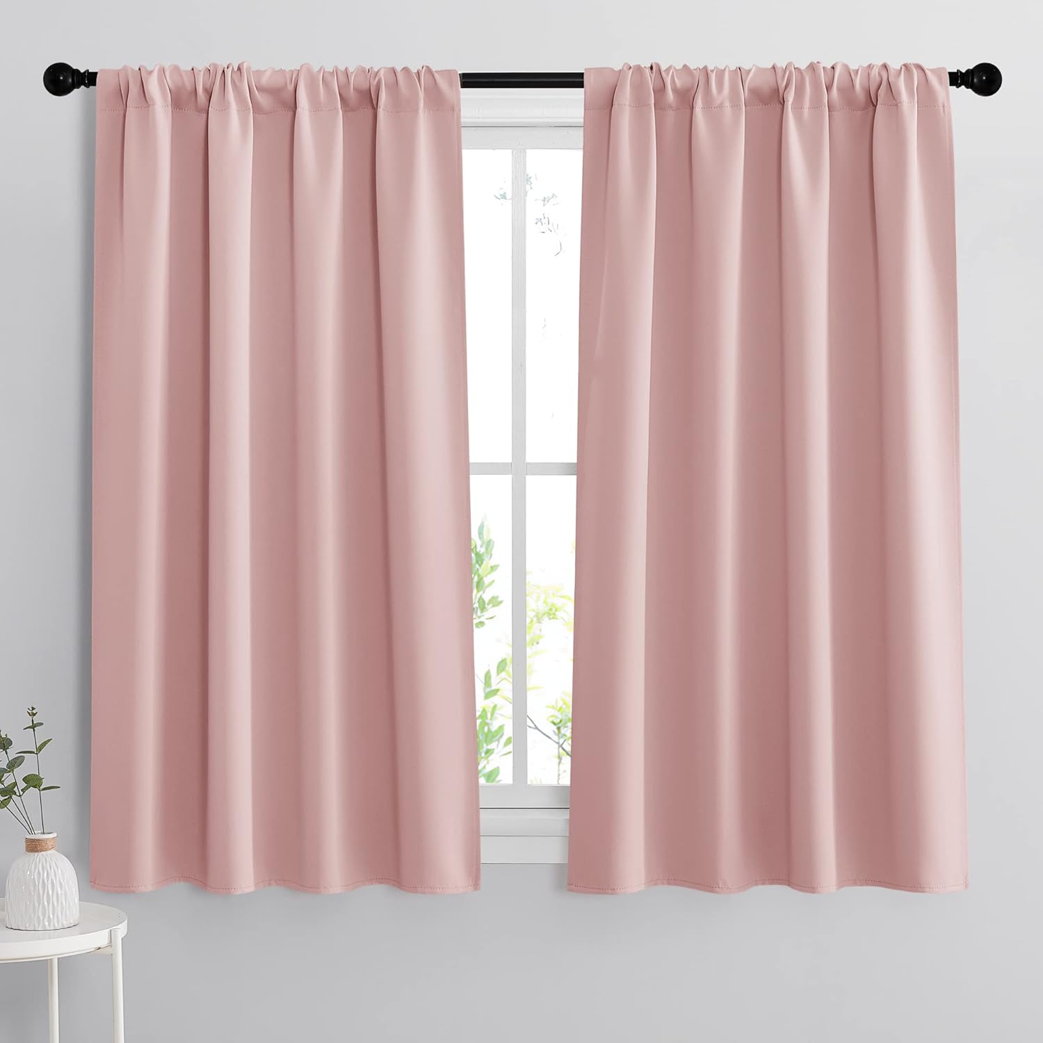 RYB HOME Short Window Curtains for Kitchen, Room Darkening Rod Pocket Drapes Decorative Privcay Backdrops Thermal Shades for Home Office Bathroom Basement, Peach Blush, W42 x L45 inch, 2 Panels