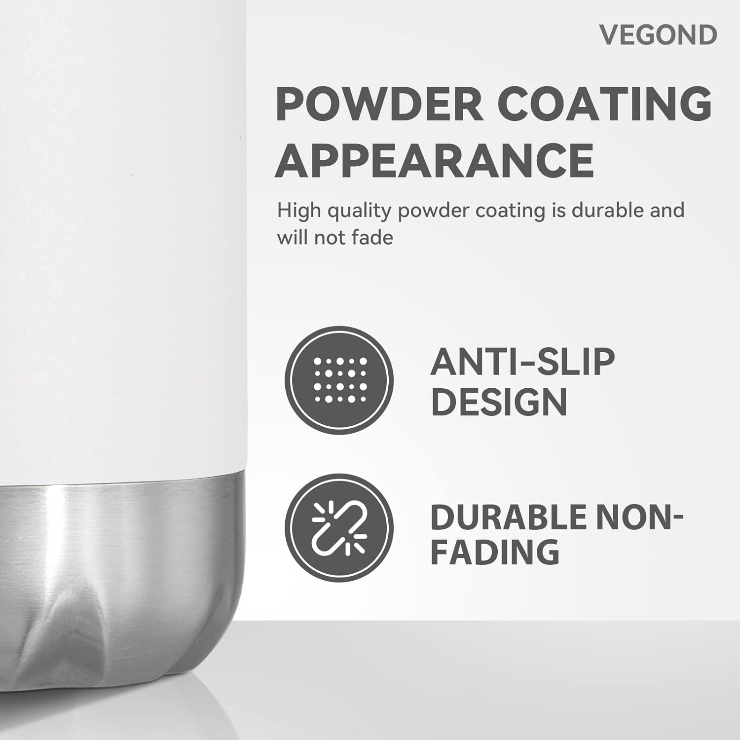 - All Day Heat / Cold Preservation : VEGOND double wall vacuum sports water bottles feature advanced heat preservation technology, keep your favorite drinks cold for up to 24 hours and hot for up to 12 hours. You can bring hot water, ice water, coffee, drinks with you. A 1.25”-diameter mouth accommodates small ice cubes and chopped fruits. The metal water bottle feature humanized design allows you to enjoy coolness in the hot summer and warmth in the cold winter