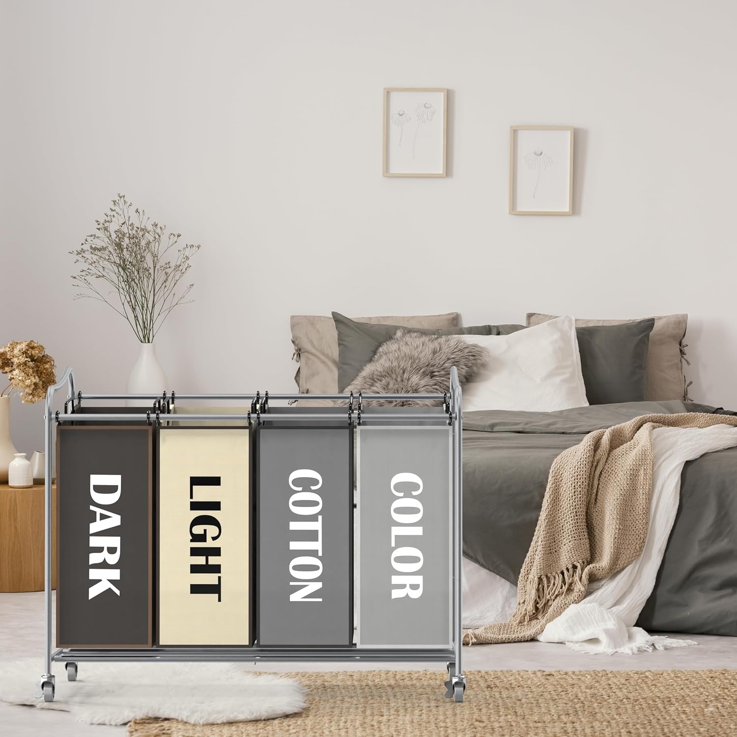 Simple Houseware 4-Bag Heavy Duty Laundry Sorter Rolling Cart, Silver/Assorted
