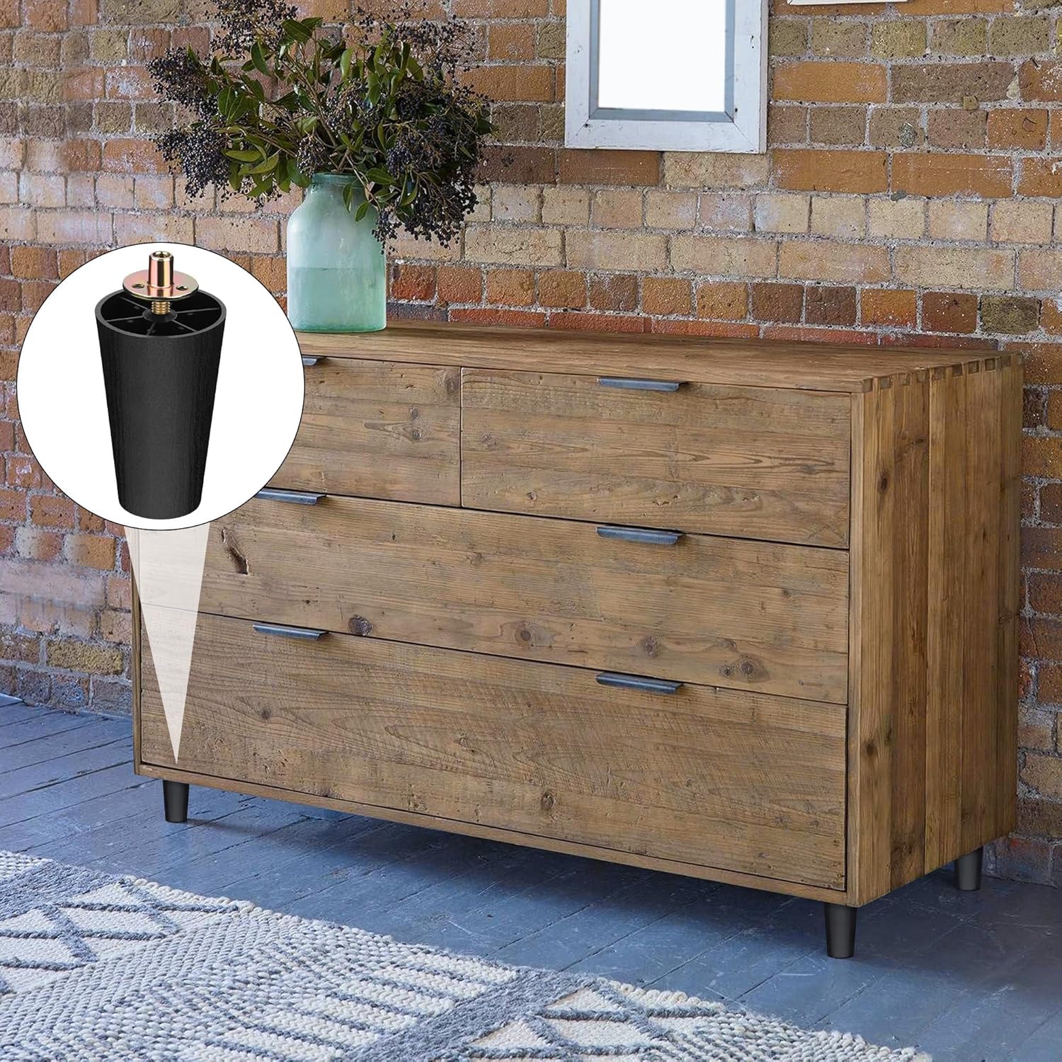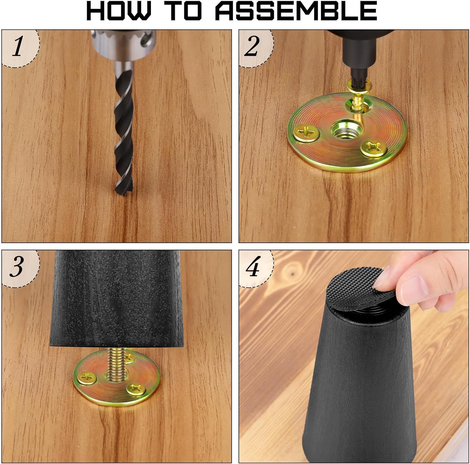 - Advantages: these replacement furniture legs with strong bearing force can help lift your furniture immediately, make you efficiently clean the place under furniture, and provide storage space for your furniture; all accessories are complete, so you can upgrade your furniture within seconds; each sofa leg is equipped with elastic rubber covers, providing additional protection and anti-slip function
