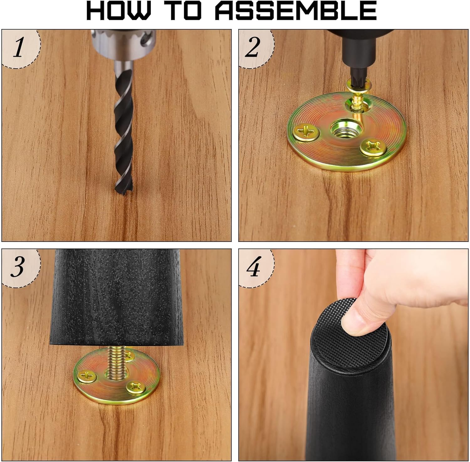 - Advantages: these replacement furniture legs with strong bearing force can help lift your furniture immediately, make you efficiently clean the place under furniture, and provide storage space for your furniture; all accessories are complete, so you can upgrade your furniture within seconds; each sofa leg is equipped with elastic rubber covers, providing additional protection and anti-slip function