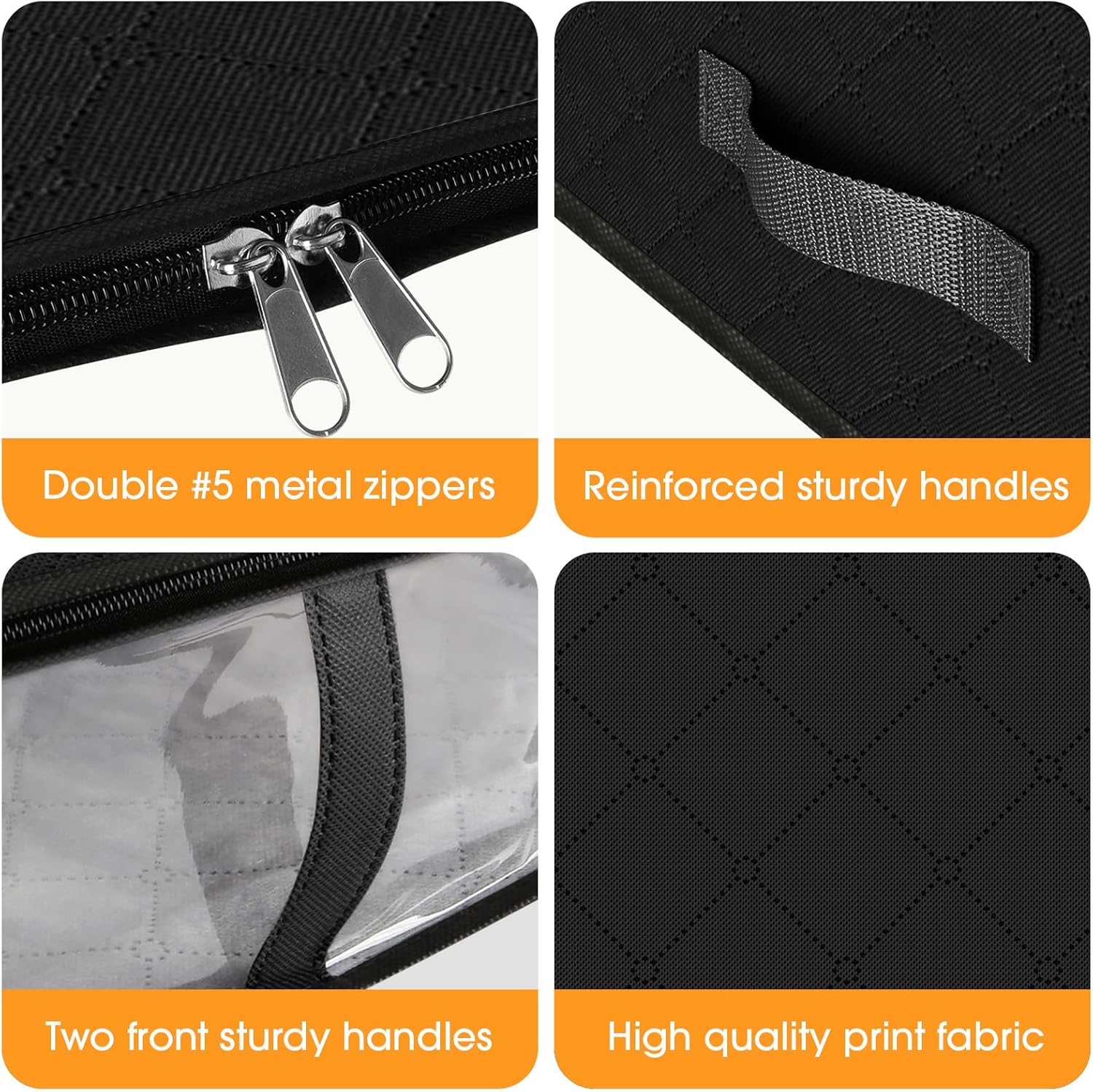 StorageRight Under Bed Storage Bins, 6-Pack 40L Foldable Fabric Storage Bags with Transparent Window, Breathable Organizer for Clothes/Blanket/Comforter/Quiltr, Black