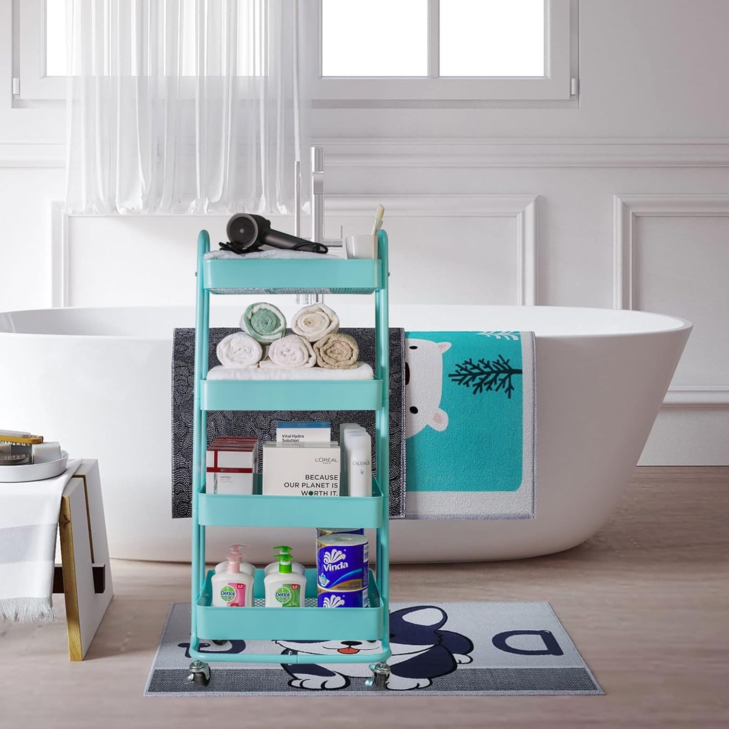 - [Move Anywhere] This 4-Tier storage cart equipped with 4 wheels (2 lockable) and 2 handles design makes it easy and convenient to keep the cart roll around to anywhere.