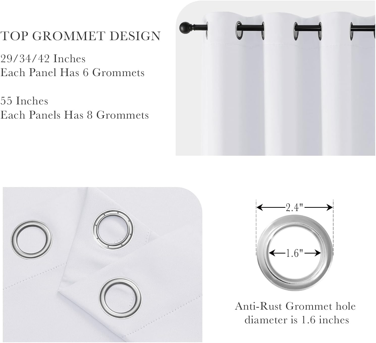 - READY MADE - 2 panels include, each measures W34" x L36", 8 silver grommets(1.6" inner diameter) fit most standard rods. For proper fullness, panels should measure 1.5-2.6 times the width of your window