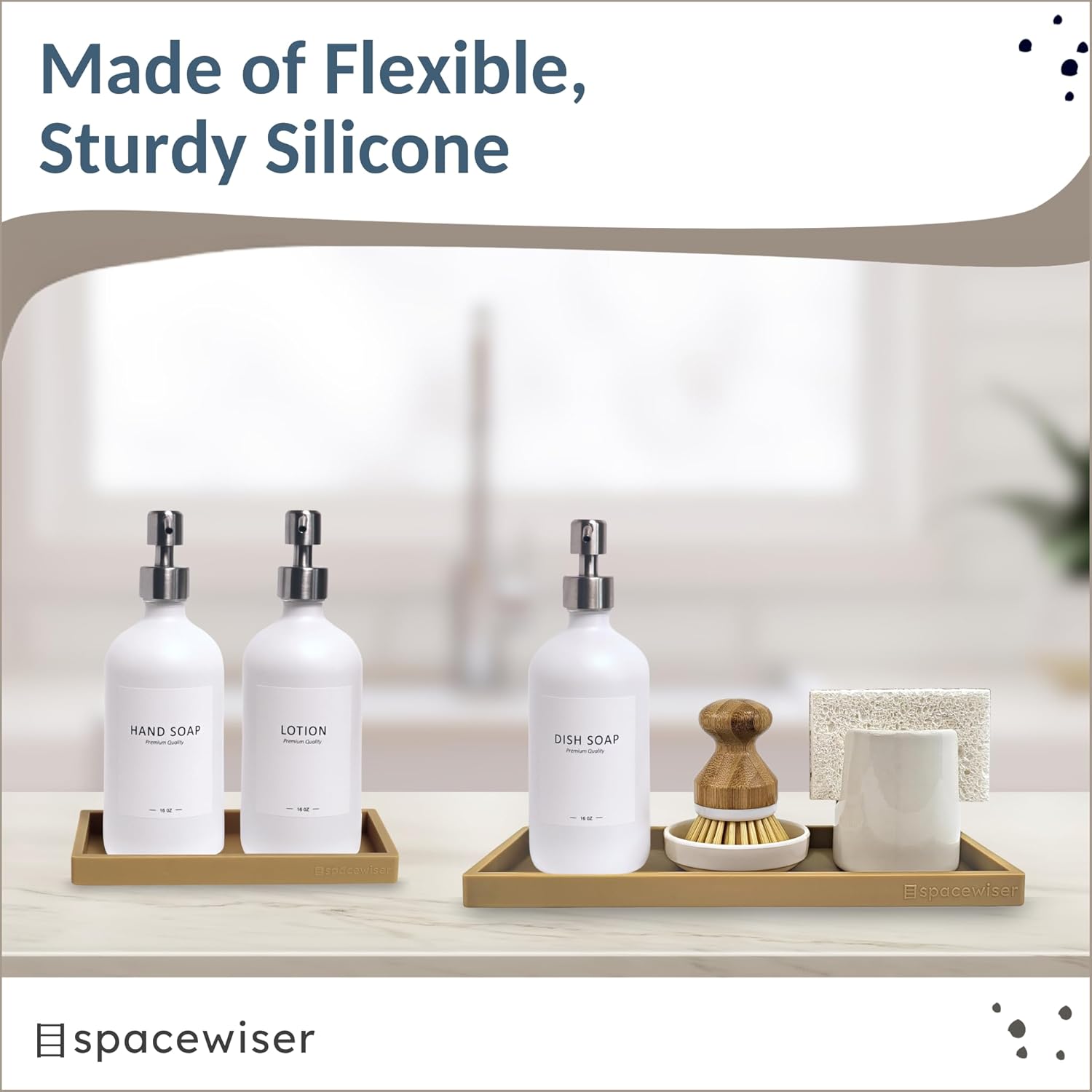 • Use Them Anywhere – Choose the endlessly useful and aesthetically pleasing trays that work anywhere. Spacewiser Original Silicone Trays work perfectly as a bathroom tray, vanity tray or kitchen sink tray. Spacewiser trays are made of premium food grade silicone, without the addition of potentially unsafe thickening and hardening agents or chemicals. They’re shatterproof, waterproof, slip-resistant, heat resistant to 425F, and dishwasher safe.