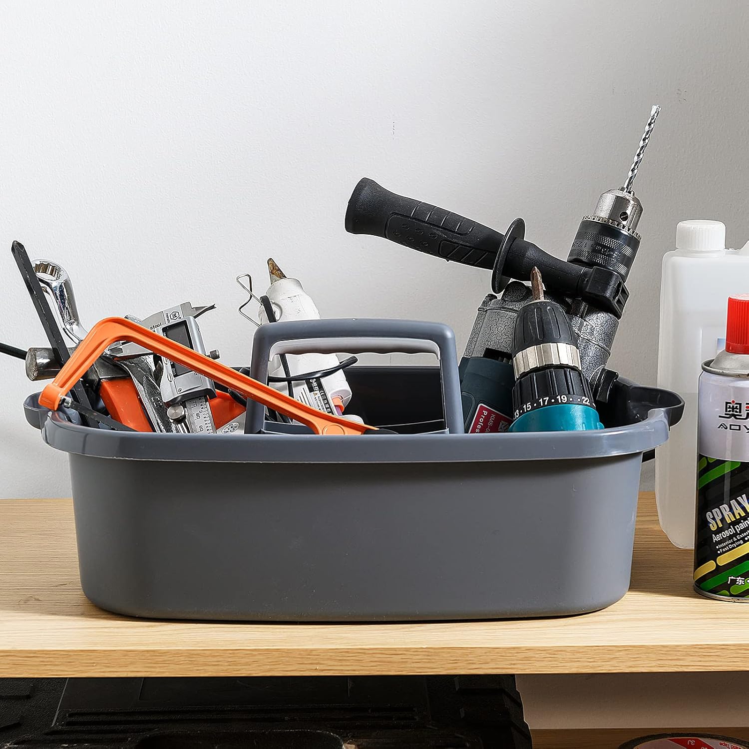 - ăMultifunctionalăThe cleaning supply caddy is versatile for all your household tasks. It can be a storage basket for storing cleaning supplies, spray bottles, brushes, cleaning cloths, paper towels, shower gel, shampoo, towels, cosmetics, hand soap, and office supplies