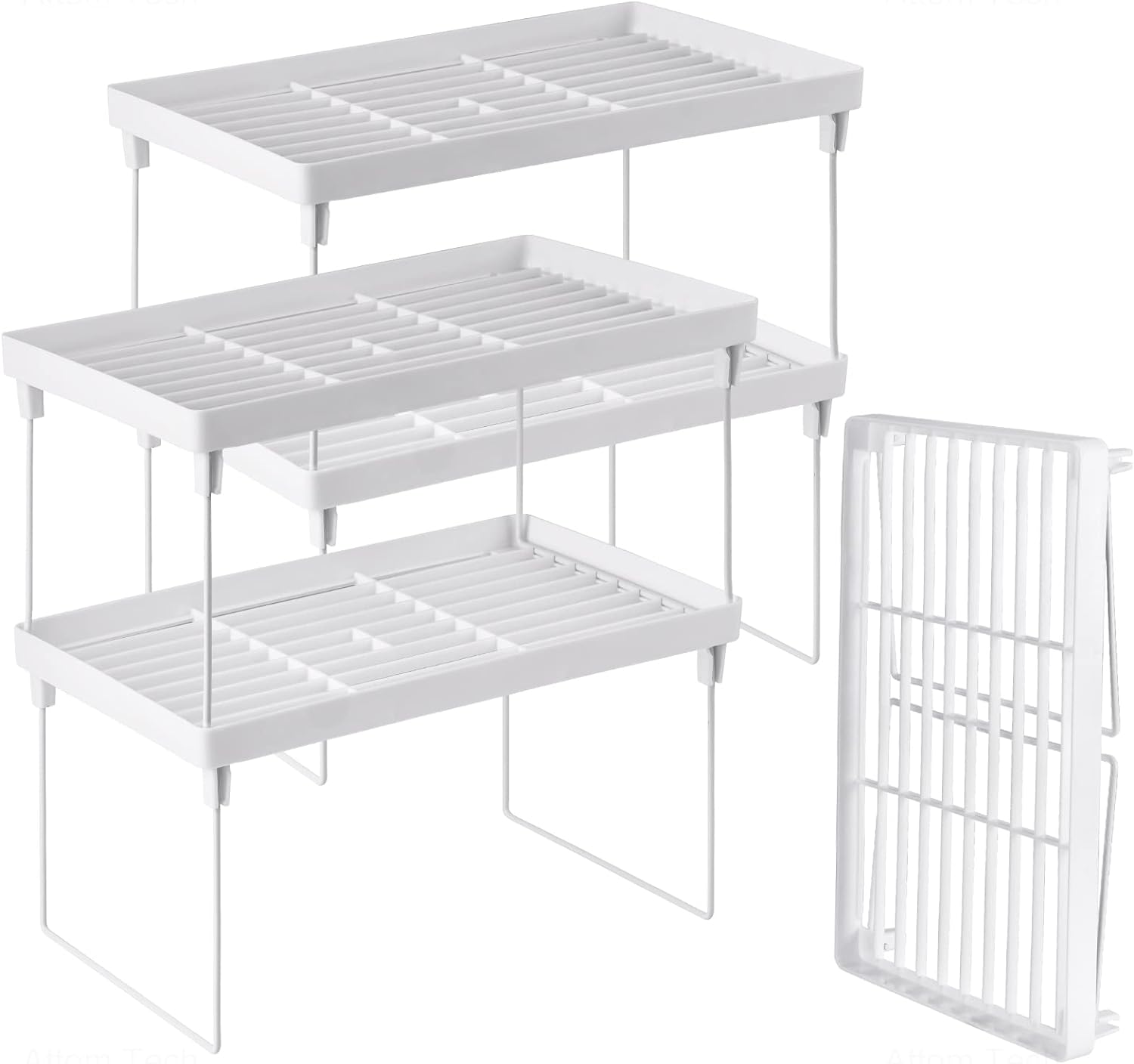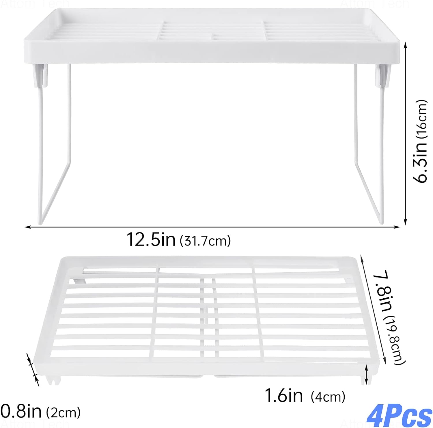 NiHome 4-Pack Stackable Plastic Kitchen Storage Shelf Foldable Rack - White Kitchen Cabinet Organizer and Storage Shelves Stackable Expandable Storage Racks for Counter Cabinet Pantry