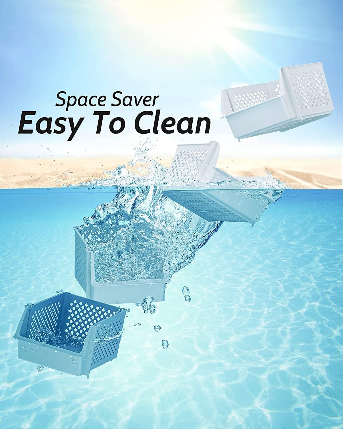 - [Save Space and Declutter Any Room]: Whether in the garage, kitchen, or kids’ room, these stacking storage bins open front help you maximize vertical space without taking over the floor. Nestable when not in use to free up even more storage.