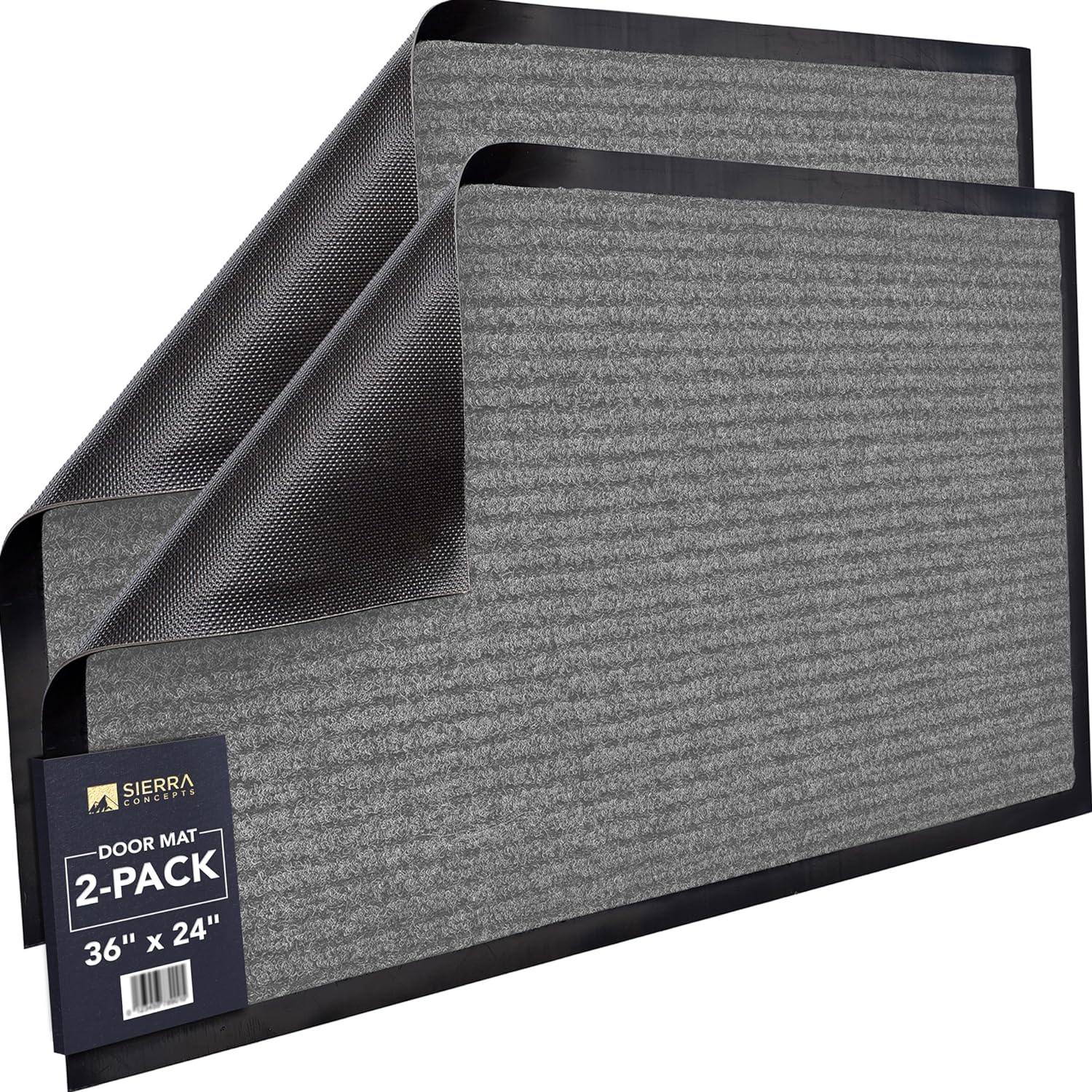 Sierra Concepts Front Door Mat Welcome Floor Mats - Entryway Indoor Outdoor Entrance Doormat, Patio, Porch, Muddy Shoe, Inside Outside Low Profile, Large 36x24 inches, 2-Pack Gray