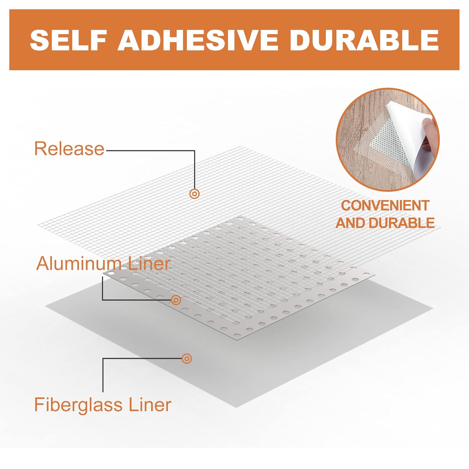 - Premium Quality & Self Adhesive:The drywall repair patches are made of premium quality aluminum and fiberglass, featuring light weight and high strength. The self-adhesive drywall repair patch is easy to use, has good adhesion and sticks easily to the damaged surface, making the wall patch durable.Suitable for repairing damaged surface, the repaired surface is flat and beautiful.