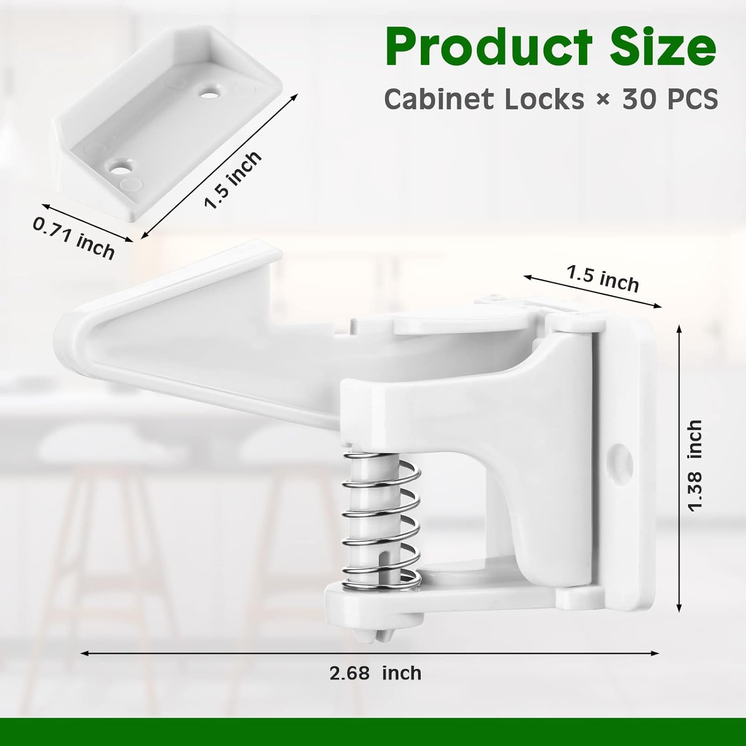 - Easy to Use: the cabinet latches provides protection and is easy to use, the hook fits well with the latch, and with a spring loaded design, parents and adults can easily open and lock with a single push of the spring loaded lock cabinets that don't require keys or magnets