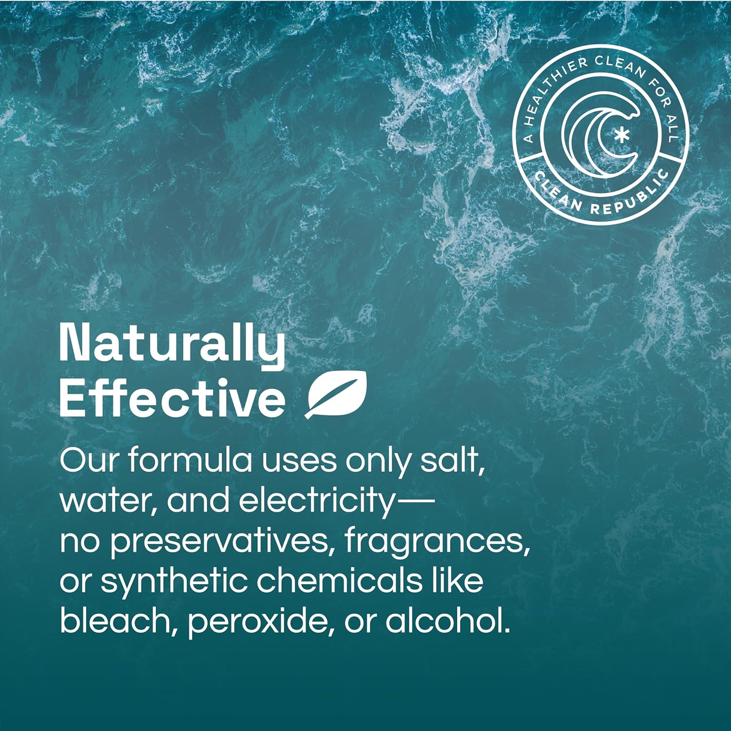 - Pure and Simple: Our natural formula is made with just salt, water, and electricity, with no preservatives, fragrances, or synthetic chemicals like bleach, peroxide, or alcohol. It is non-corrosive, eliminates odors, and freshens the air
