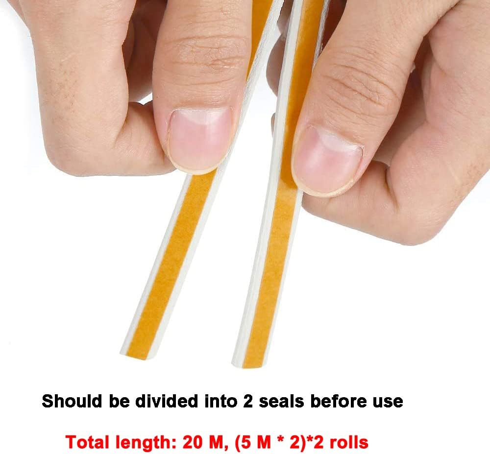 - ❄【Size】Width:7/20 Inch, thickness (pitch size):6/25 Inch. The corresponding gap size is about 7/50 Inch to 13/64 Inch. Come with 2 Rolls, each roll tape can be divided into 2 seals (16.4Ft x 2), total 65.6Ft. The self-adhesive foam tape for door, window, bathroom, shower, sink, various furniture, cars, speakers, toys, crafts, sports equipment, etc.