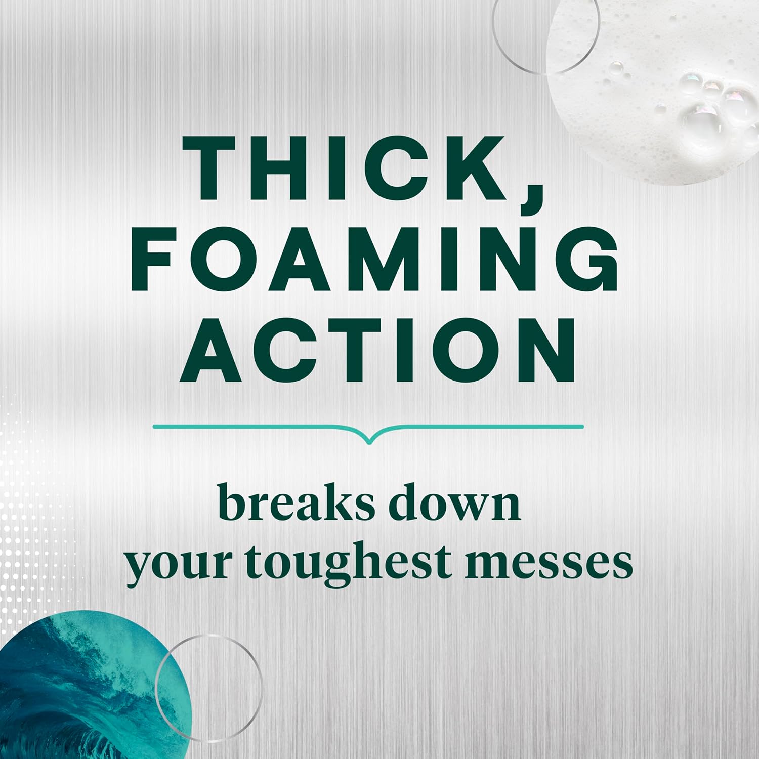- Dishwashing liquid with a thick foaming action that breaks down the toughest messes, so you donโt have to
