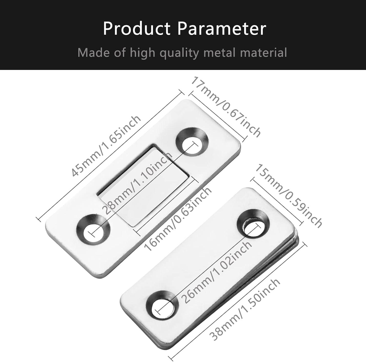 • Widely Application: The Magnetic Door Catch not only can prevent kids and pets from opening the cabinet or drawer door, but strong enough to keep the cabinet door, drawers, sliding wardrobe door, closet door shut properly. It is a good helper in your house