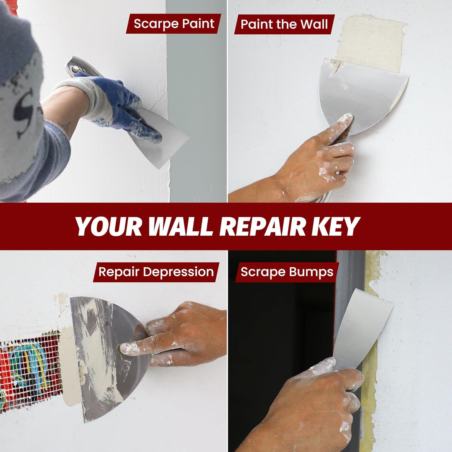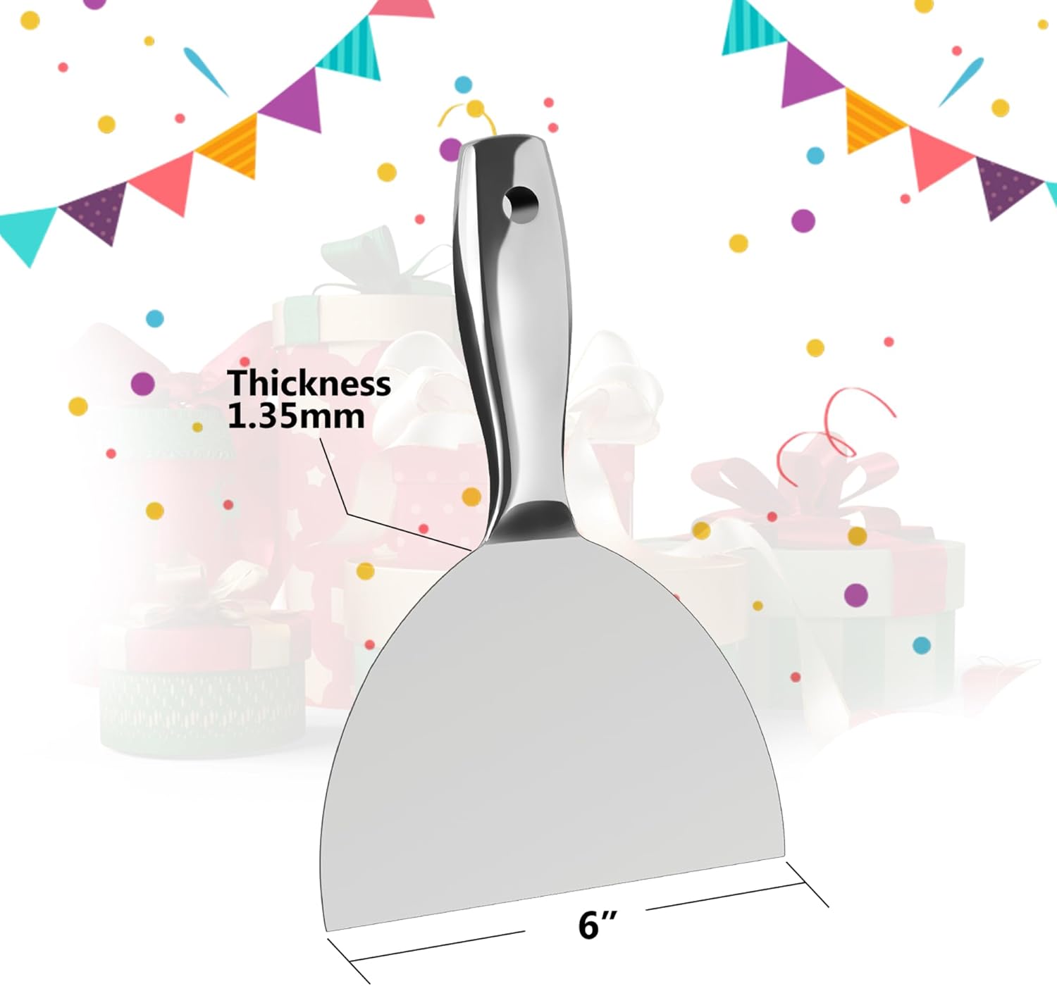 - [EXCELLENT HANDLE]The handle of putty scraper is thickened to make it more streamlined,with ergonomic grip and less effort to use.The hammerhead handle, hanging hole design also makes it being a good helper for home work