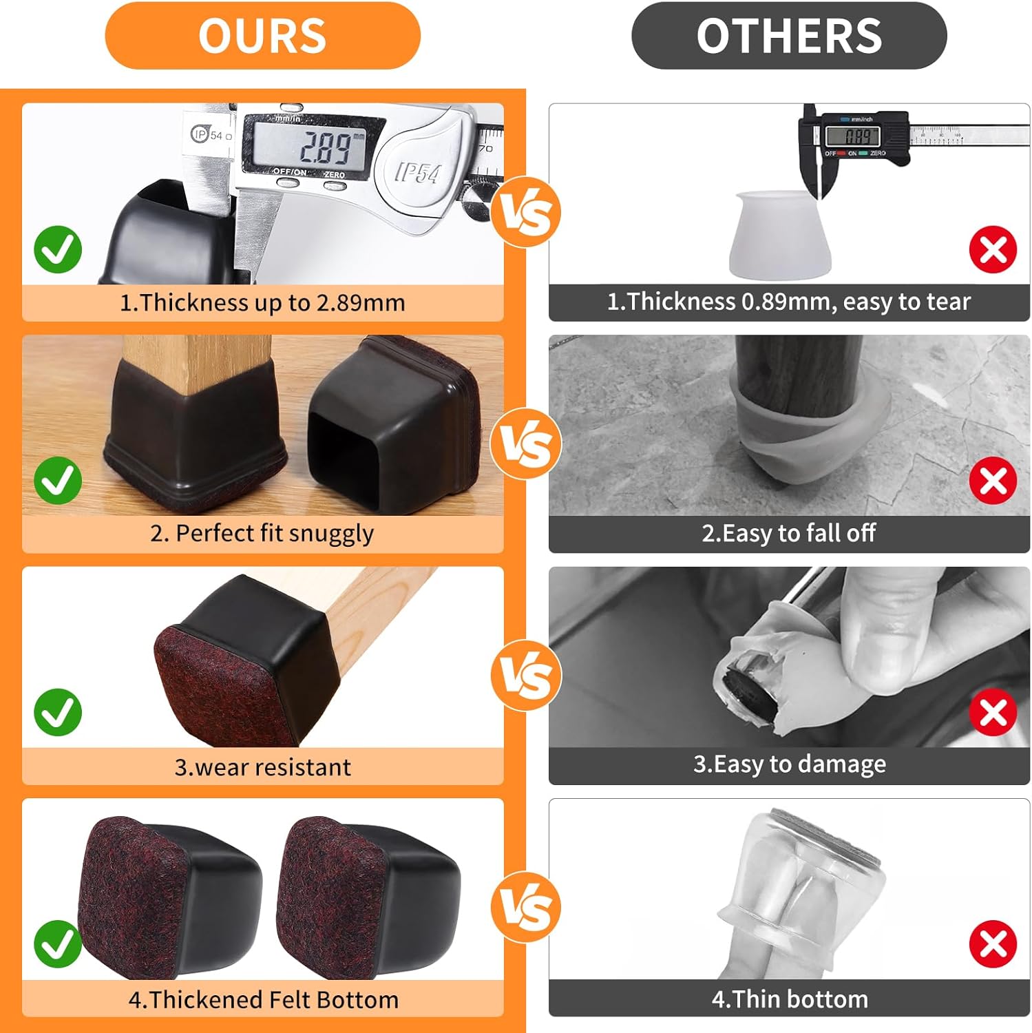 - ☛【Not Easy to Fall Off】- Chair leg covers is made of premium soft thermo-plastic-elastomer material, which is stretchable. They are easy to slip-on, no need to stick, and have strong adhesion, it tightly wrap legs, and not easy to fall off.