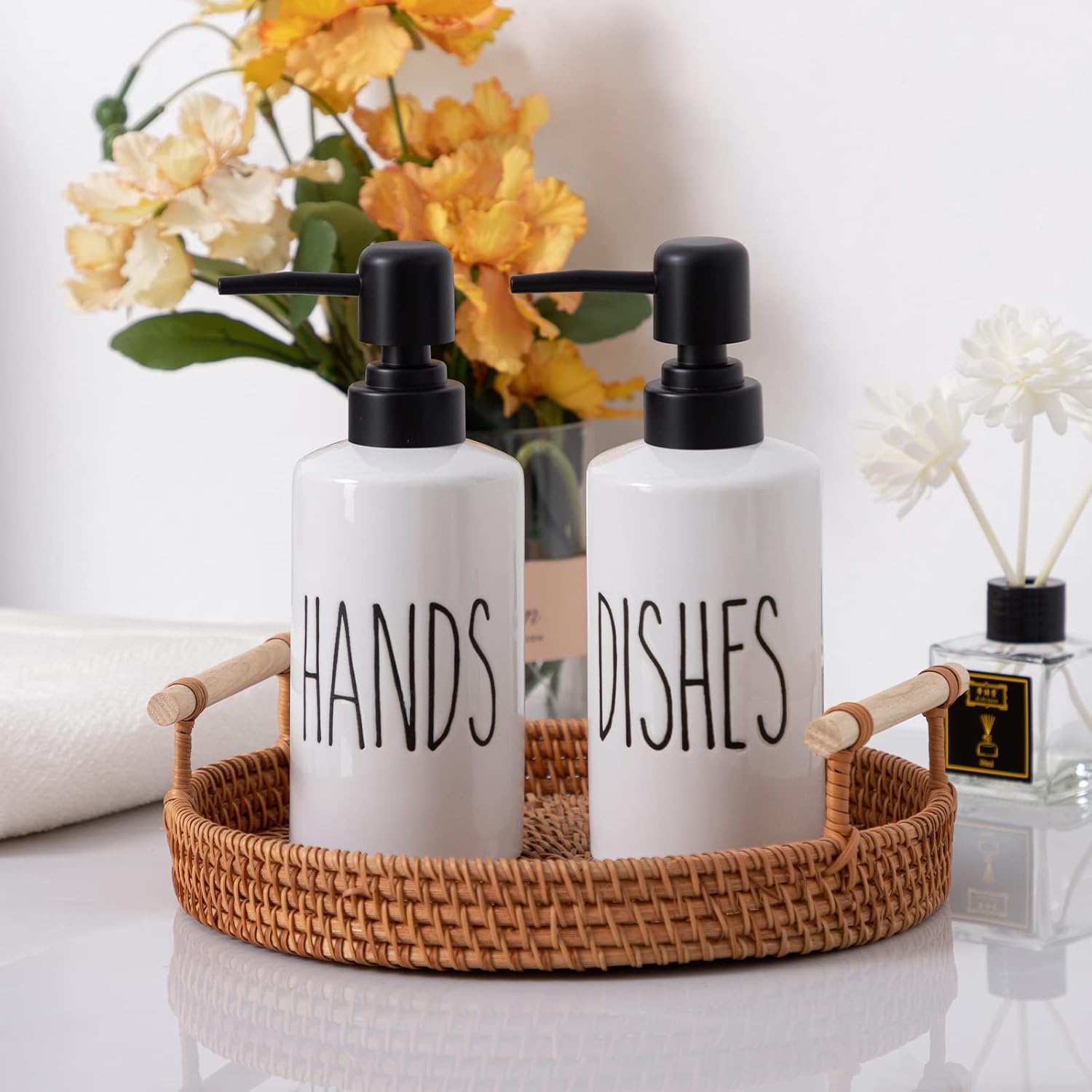 FE Dish Soap Dispenser for Kitchen, 10oz Ceramic Soap Dispenserr for Bathroom with Plastic Pump(Dishes)